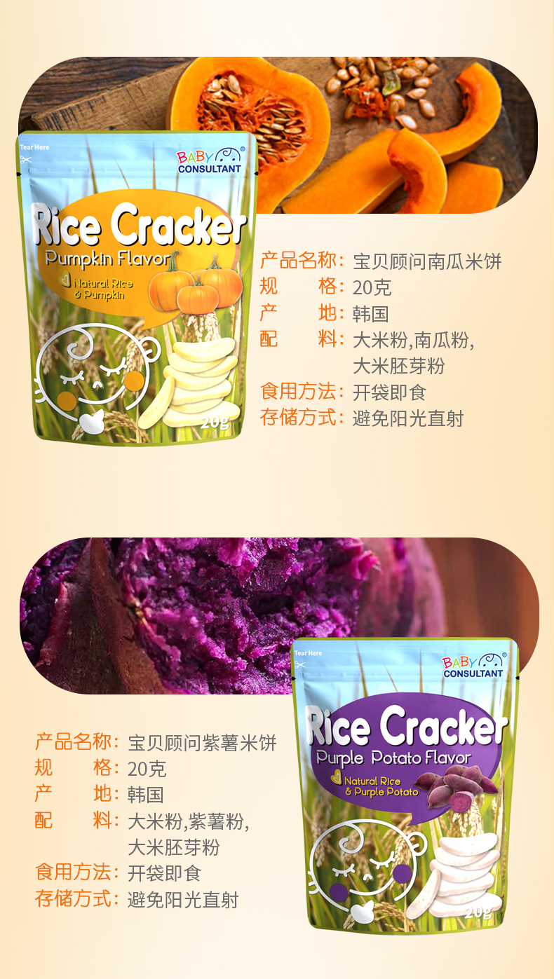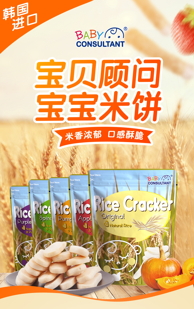 宝贝顾问米饼3袋装宝宝婴儿米饼辅食儿童磨牙棒饼干无添加