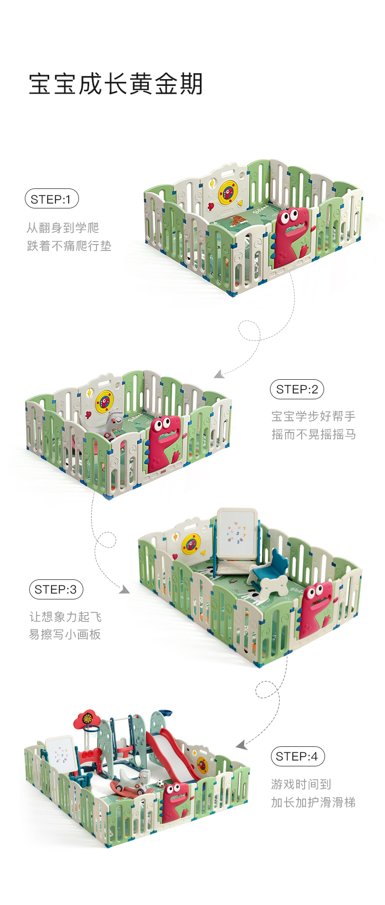 【babycare好物集】恐龙游戏围栏防护栏婴儿儿童地上宝宝安全爬行垫室内家用