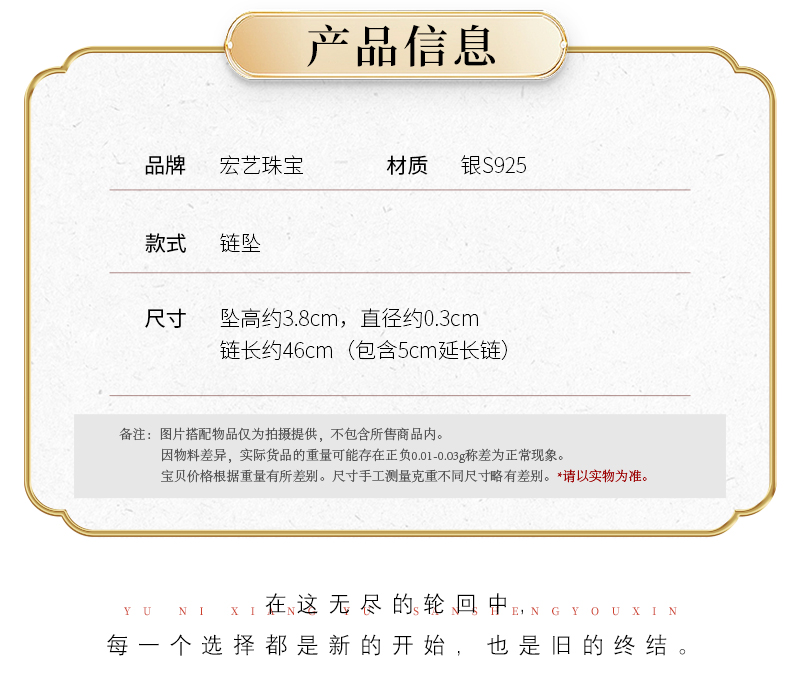 【宏艺珠宝】金箍棒·银s925链坠