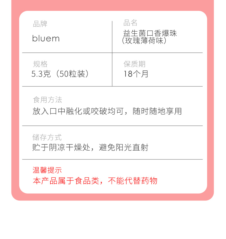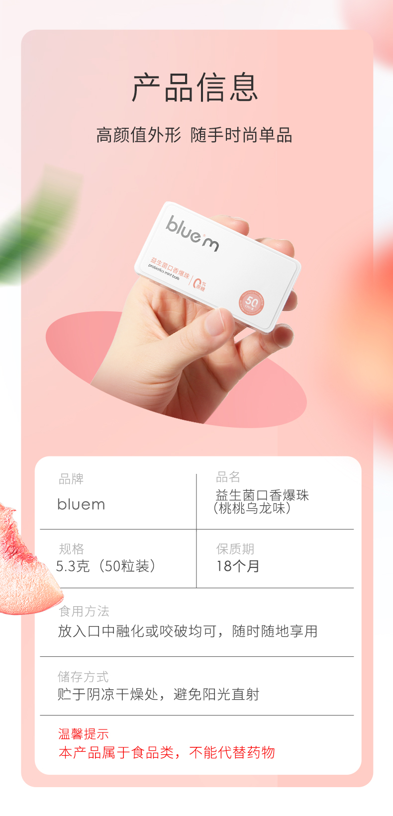 【Bluem & 益生菌口腔爆珠】 口腔口气清新爆糖珠剂持久型女生除口去口臭喷雾亲接吻神器