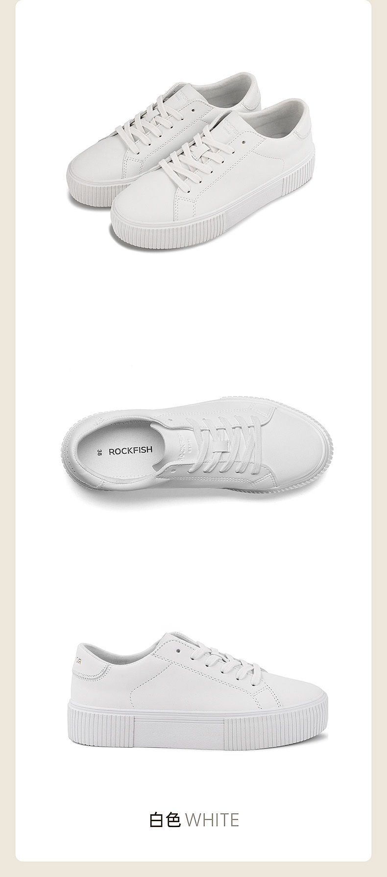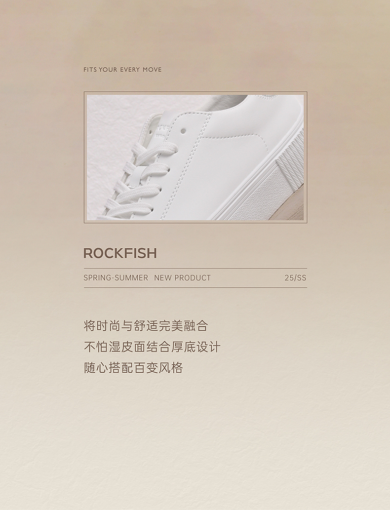 【亲妈精选】潇洒姐同款Rockfish英国771厚底增高不怕湿休闲板鞋松糕底小白鞋