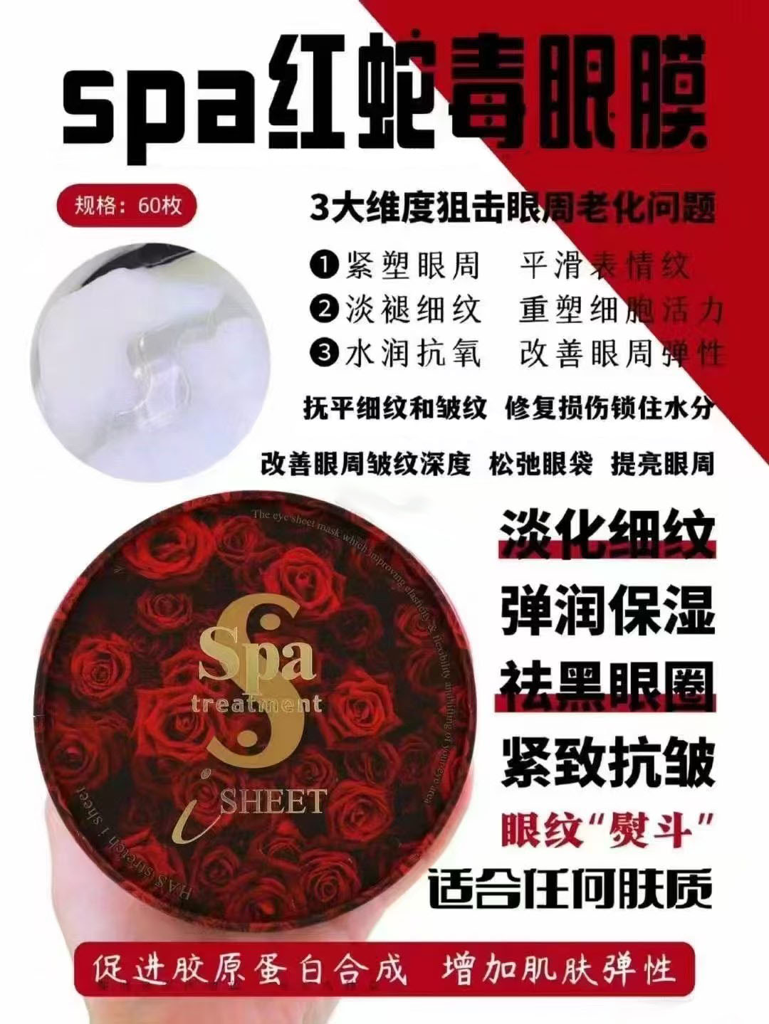 日本 SpaTreatment红/黑色蛇毒眼膜60枚 版本随机发