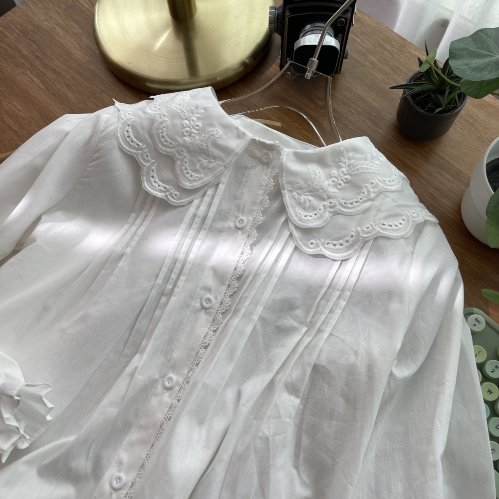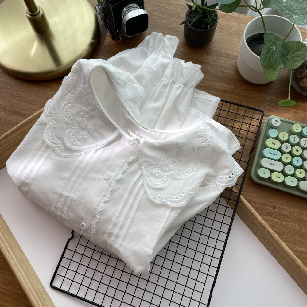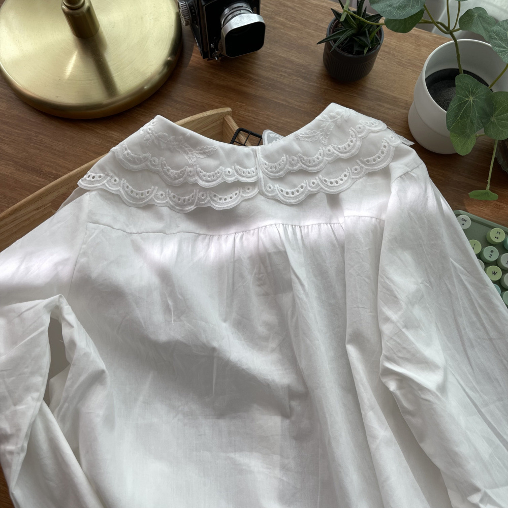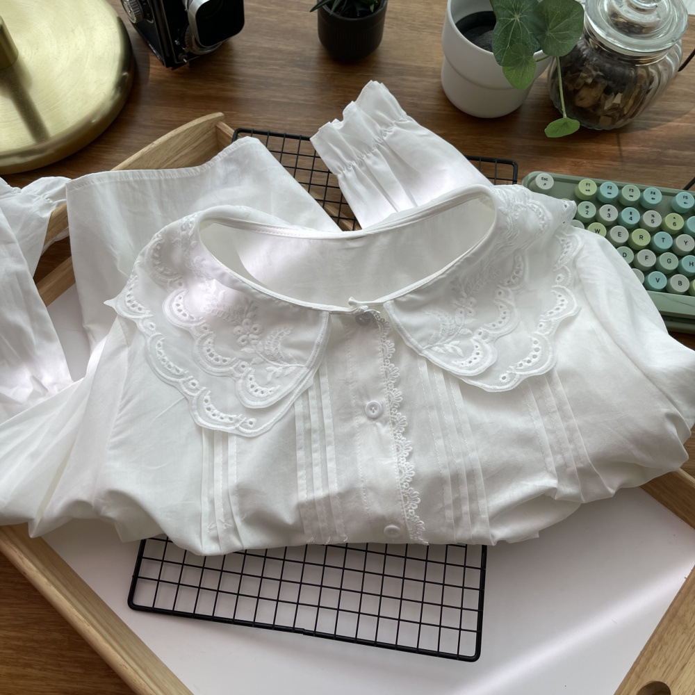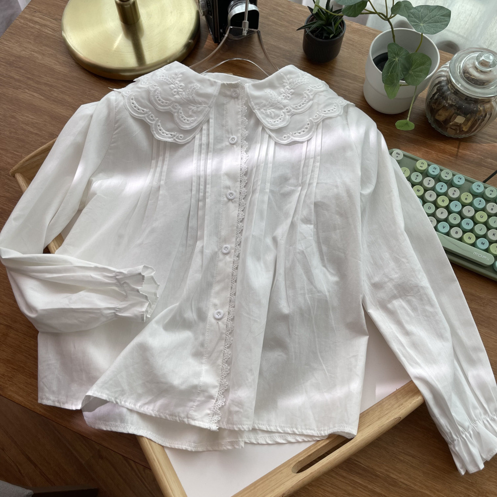 春季【法式娃娃领上衣 日系文艺系】休闲日常 木耳袖口 白色长袖衬衫女