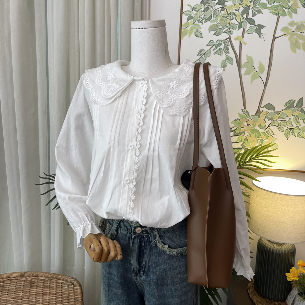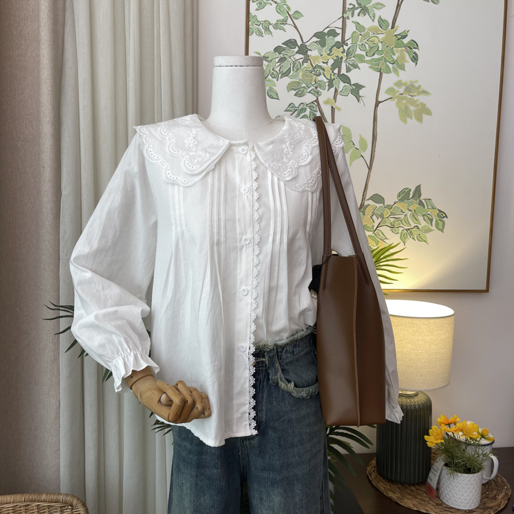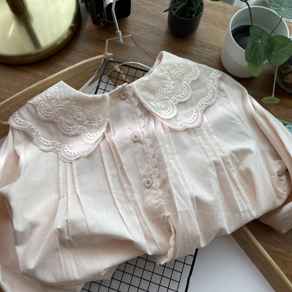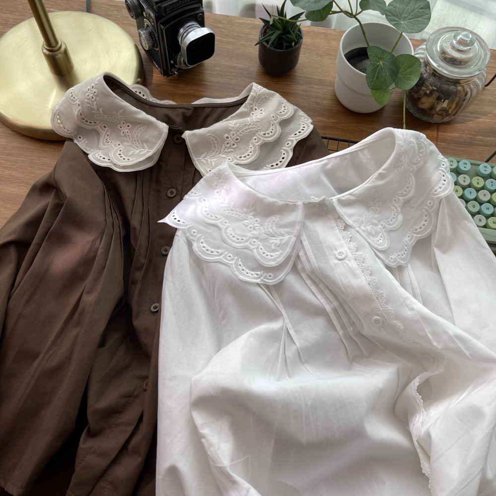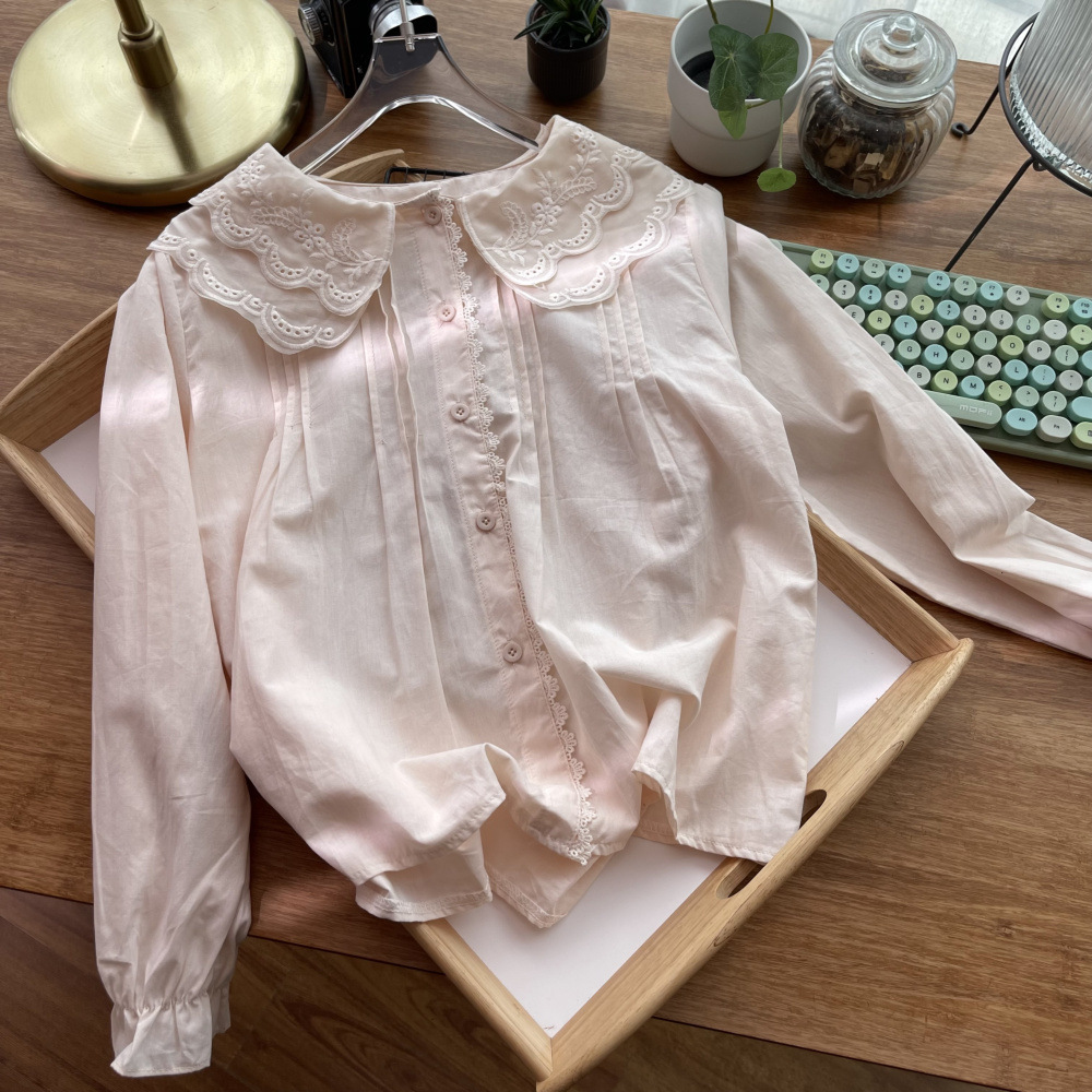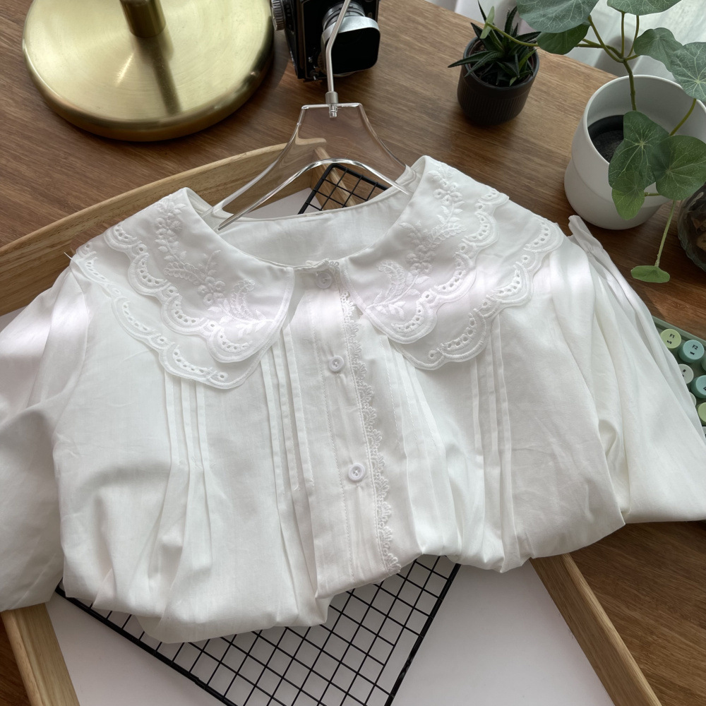 春季【法式娃娃领上衣 日系文艺系】休闲日常 木耳袖口 白色长袖衬衫女