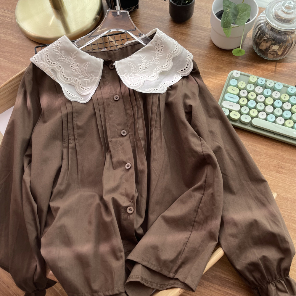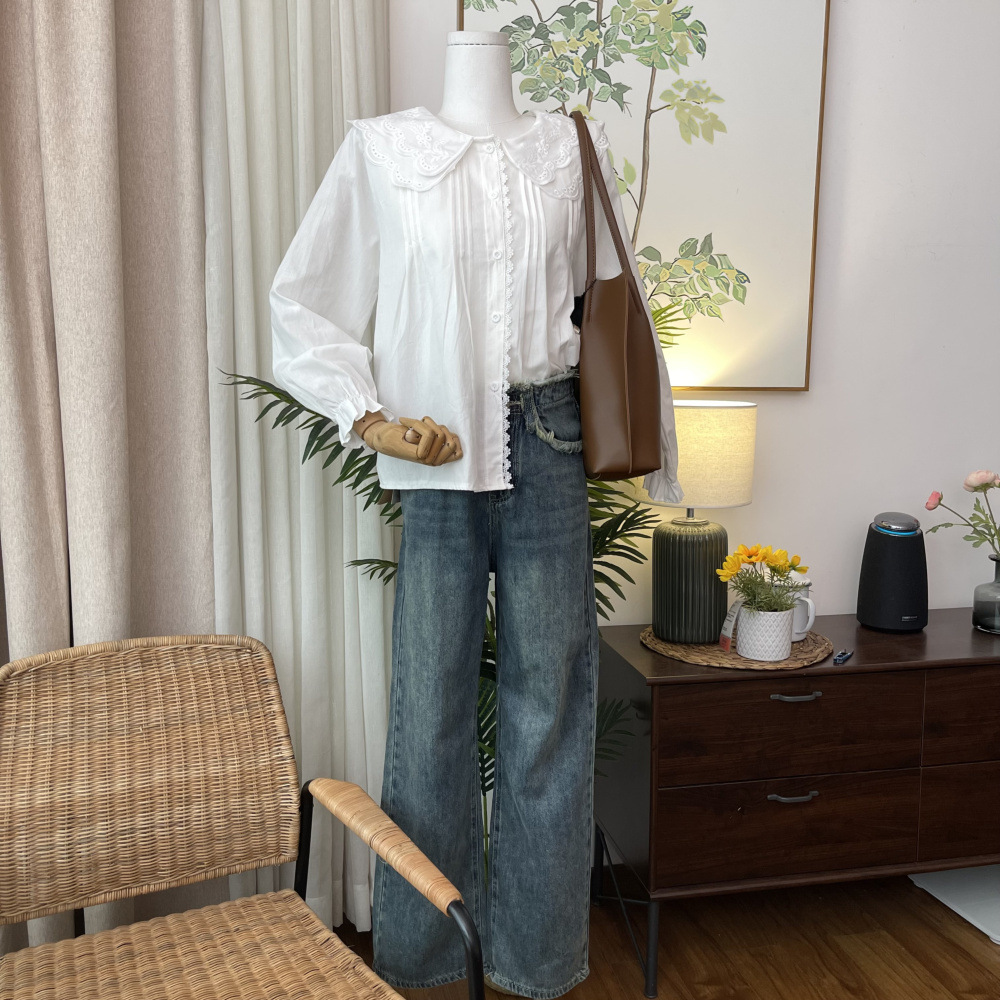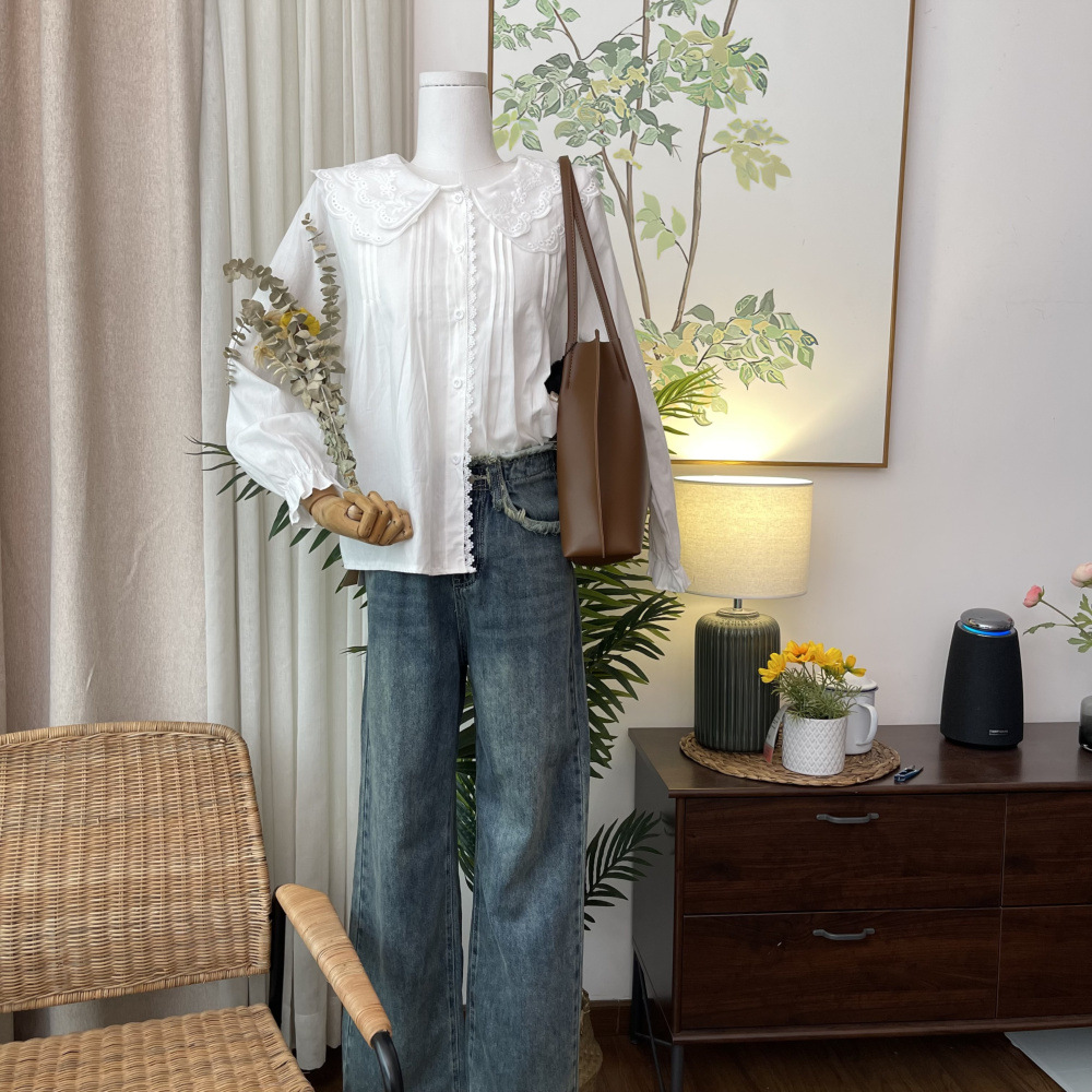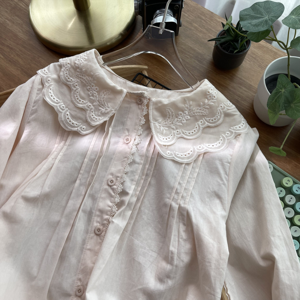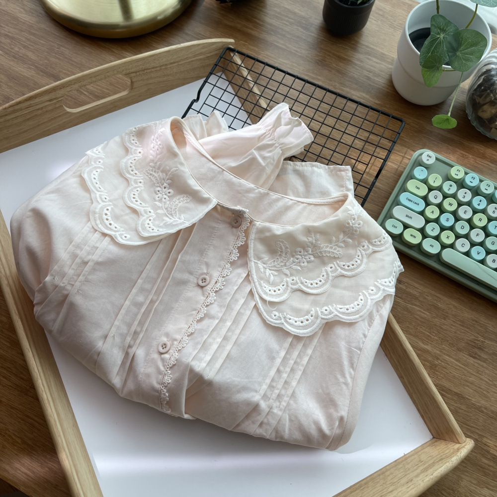 春季【法式娃娃领上衣 日系文艺系】休闲日常 木耳袖口 白色长袖衬衫女