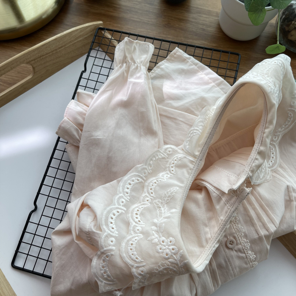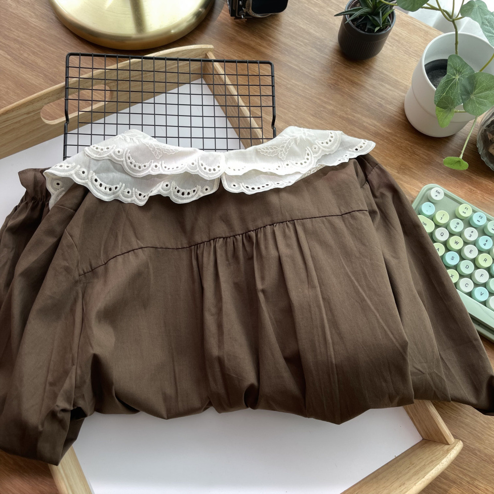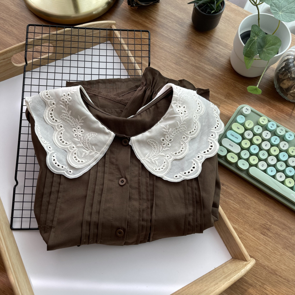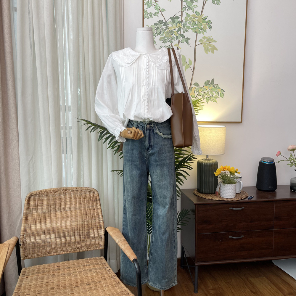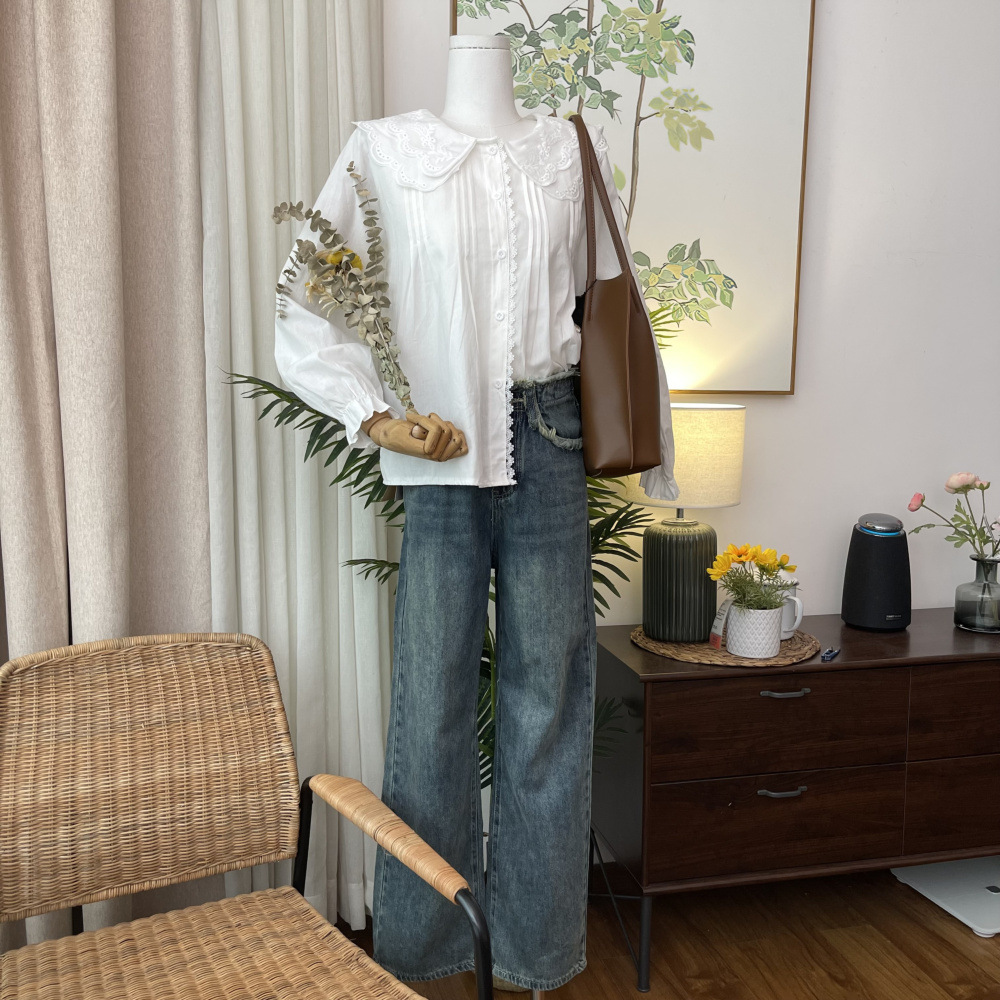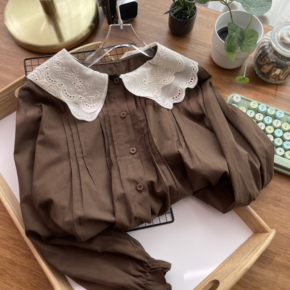 春季【法式娃娃领上衣 日系文艺系】休闲日常 木耳袖口 白色长袖衬衫女