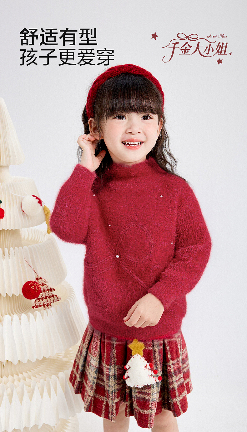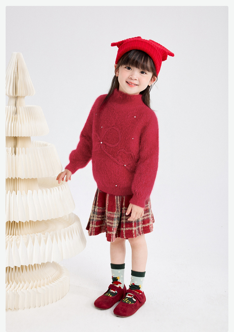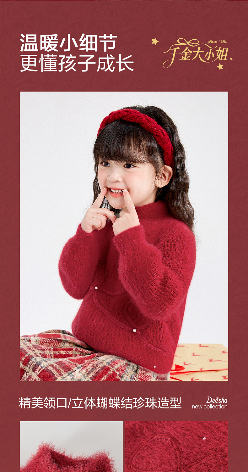 笛莎Deesha 女童毛衫2025年冬季新款小童女孩儿童洋气喜庆舒适新年毛衣