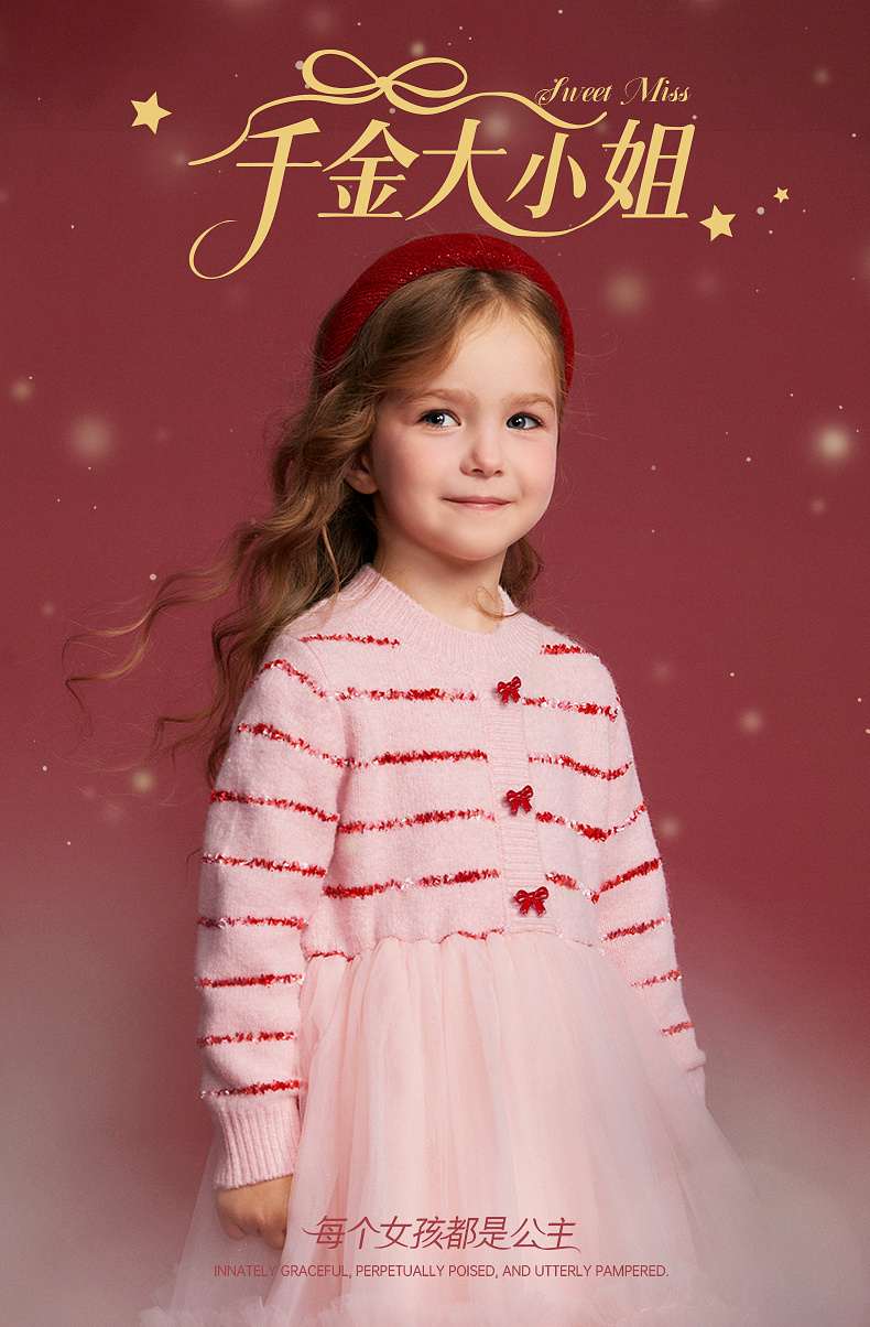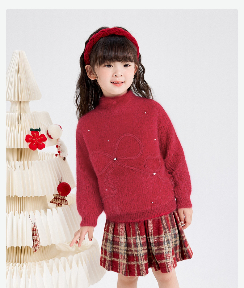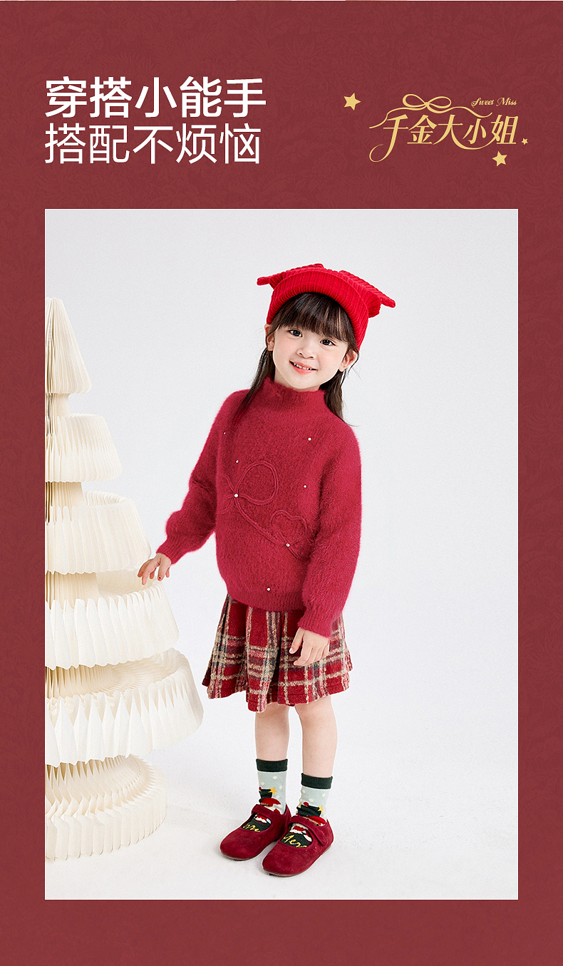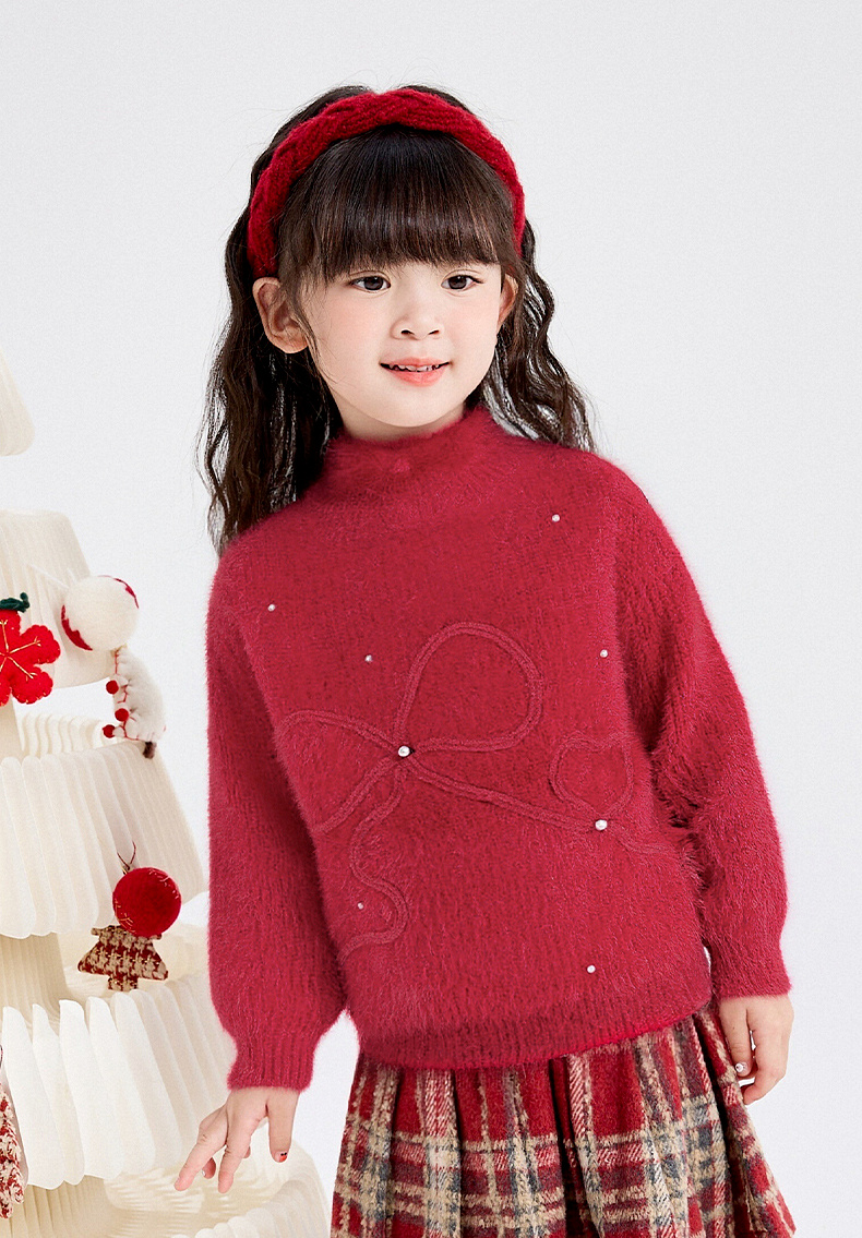 笛莎Deesha 女童毛衫2025年冬季新款小童女孩儿童洋气喜庆舒适新年毛衣