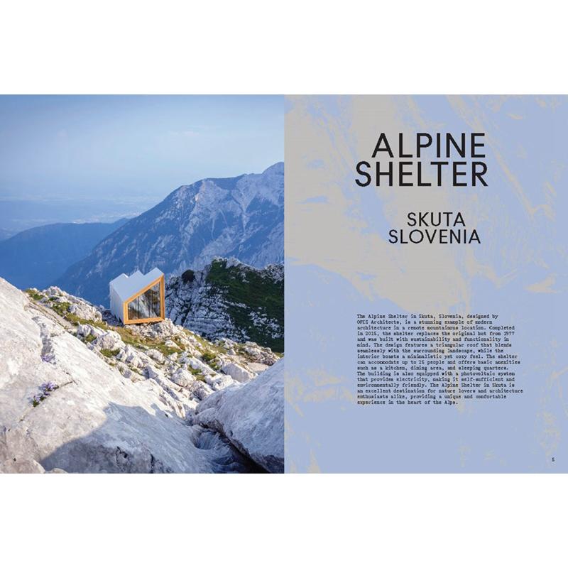 Discover the hidden beauty of some 30 mountain cabins and their distinctive architecture in this captivating book. From cosy retreats nestled in the woods to modern structures perched on cliffsides, explore the unique and innovative designs that blend seamlessly into their rugged surroundings. Follow along as renowned architects share their visions and inspirations for creating mountain cabins that not only provide shelter but also enhance the natural beauty of the landscape. Stunning photographs showcase the details of each cabin, from the materials used to the panoramic views that greet visitors. Whether you're an architecture enthusiast or simply seeking inspiration for your next mountain retreat, this book has you covered. The selection includes cabins in both Europe & North America and has detailed information on the hiking trails located near each featured mountain cabin.