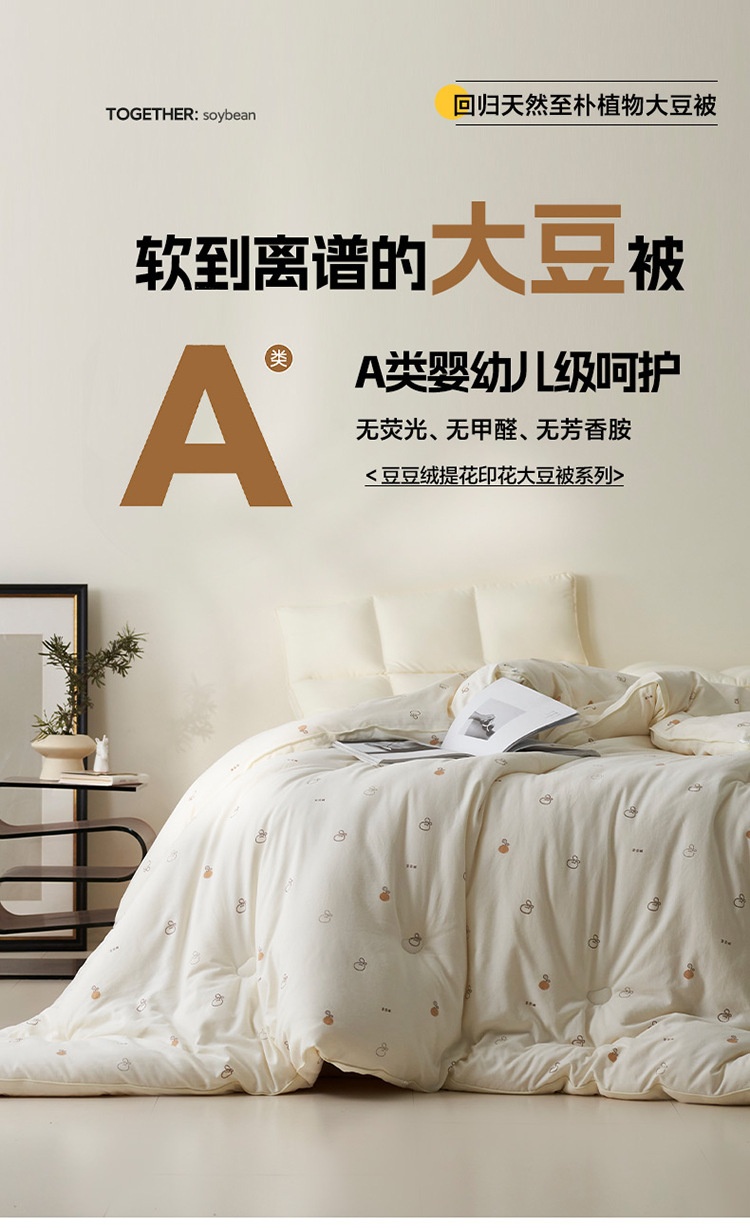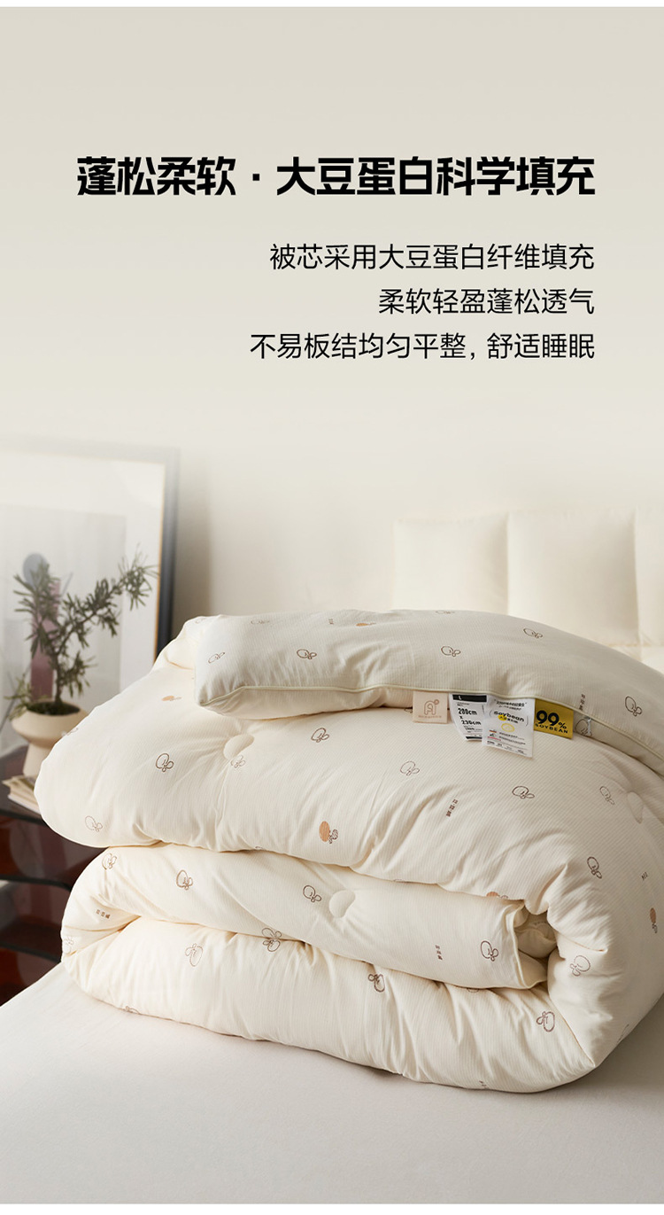 【豆豆绒提花印花大豆被】大豆纤维被印花提花大豆a类冬被被子加厚春秋被柔软