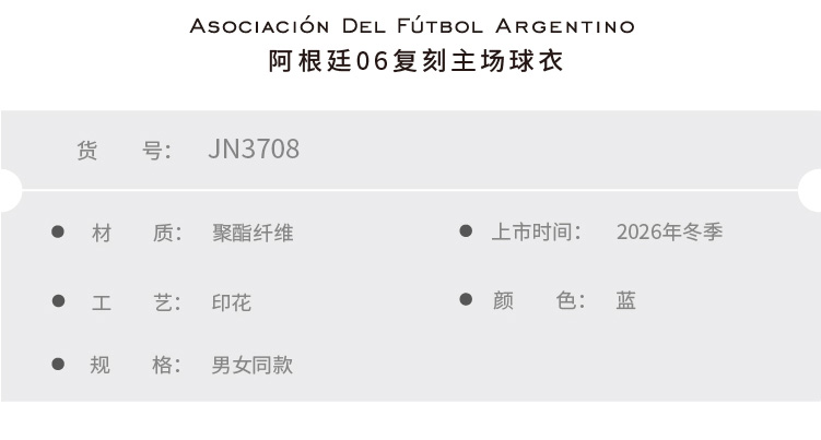 【官网同款】阿根廷国家队|阿根廷06复刻主场球衣-梅西球迷纪念