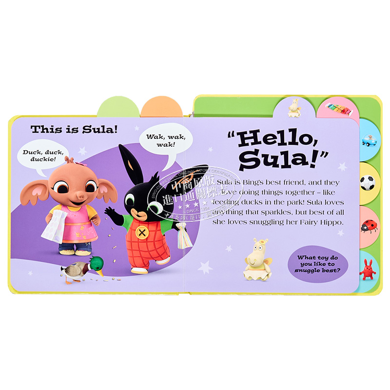 快来翻开这本色彩缤纷的翻页硬纸板书,和Bing以及他的朋友们打个招呼吧!