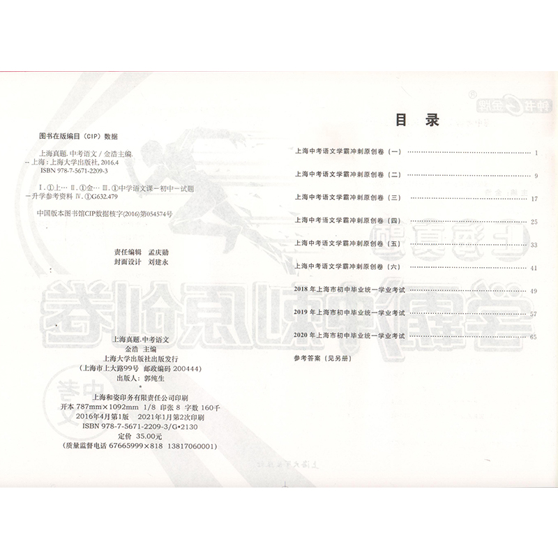 钟书金牌 2021新版 上海真题学霸冲刺原创卷 中考语文 2018-2020上海初中学业考试卷 上海大学出版社