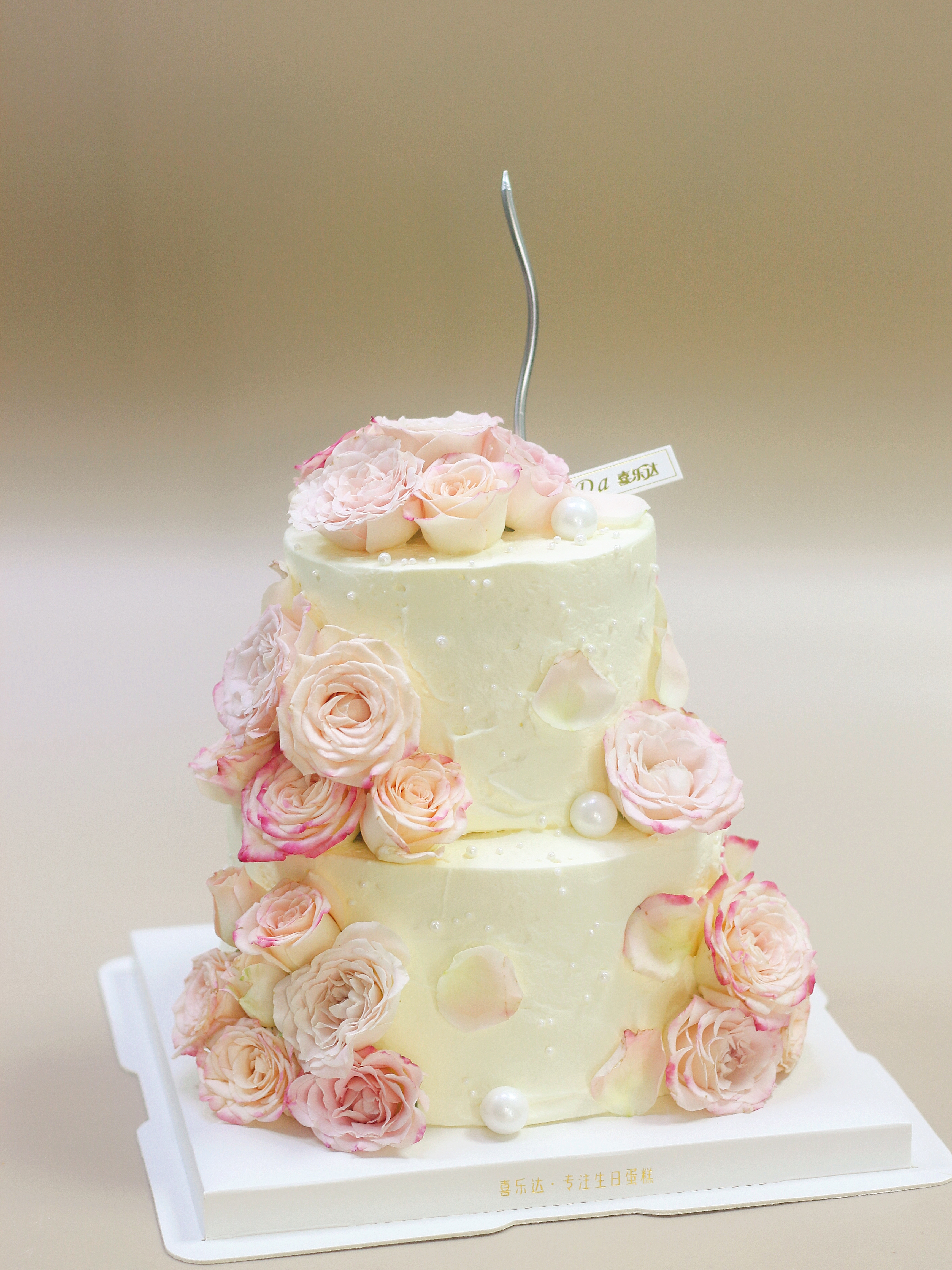 加高胚三层夹心【折射玫瑰】鲜花蛋糕