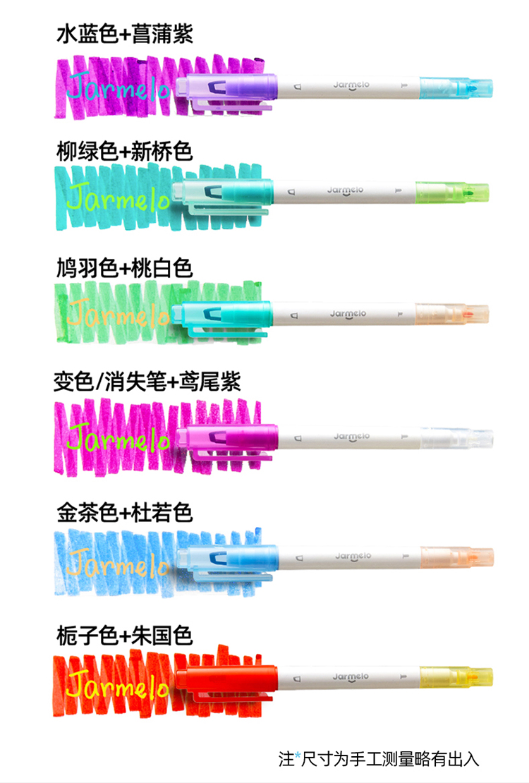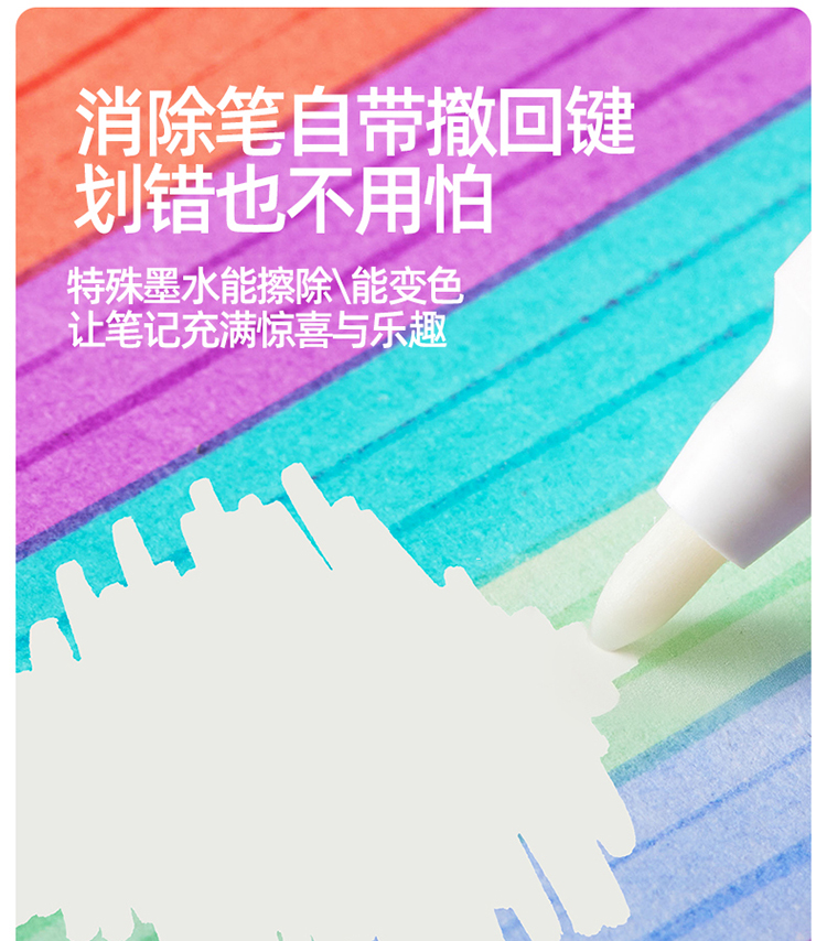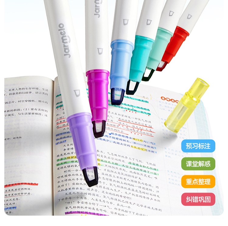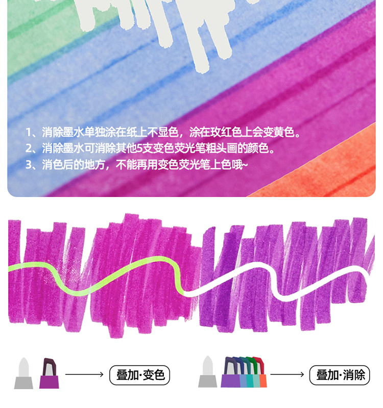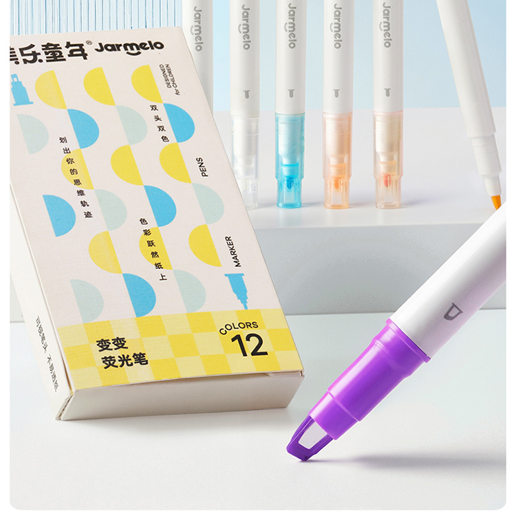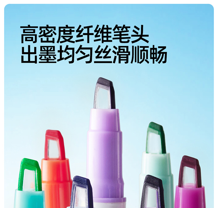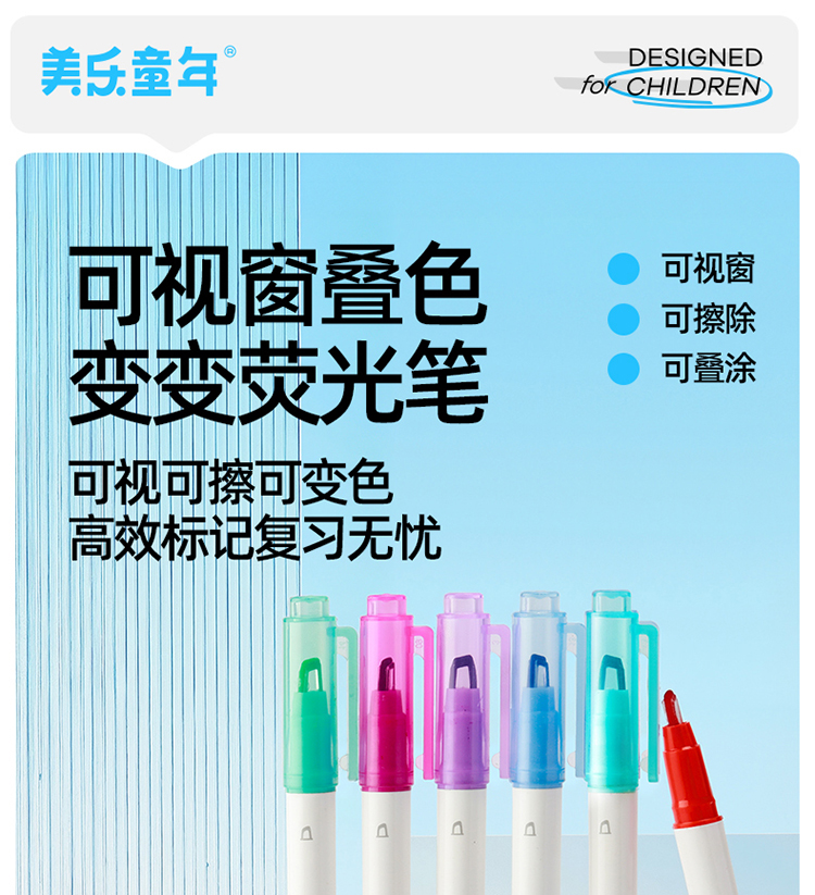 美乐童年变变荧光笔彩色划重点小学生专用初中生标记笔大容量可擦可变色高颜值ins风可视窗可叠色双头记号笔