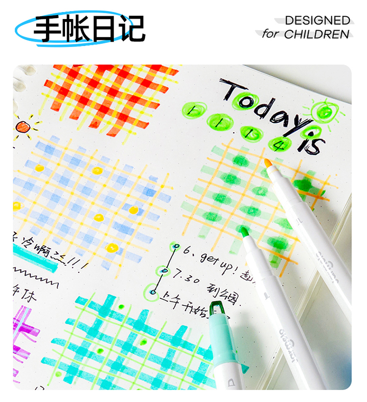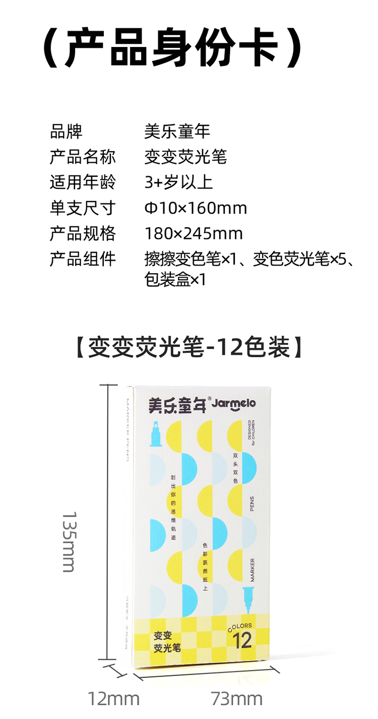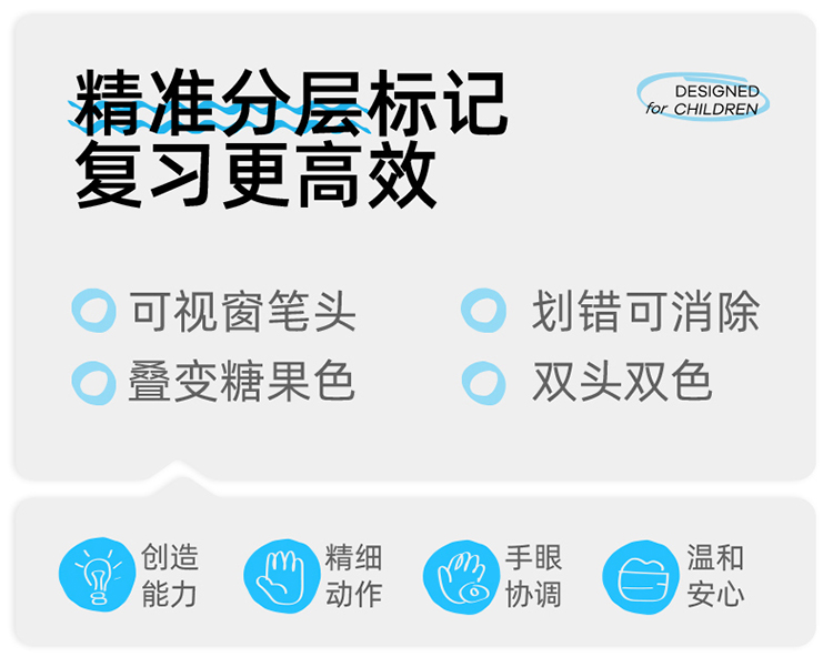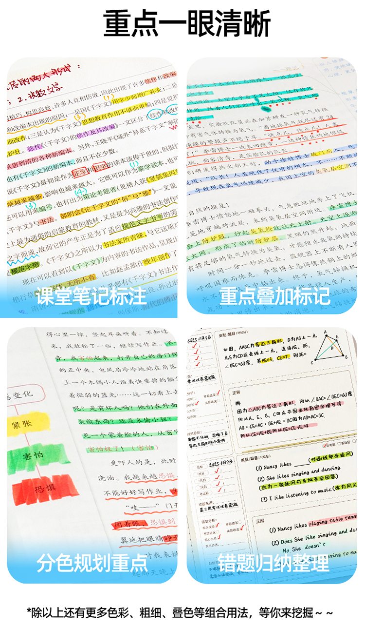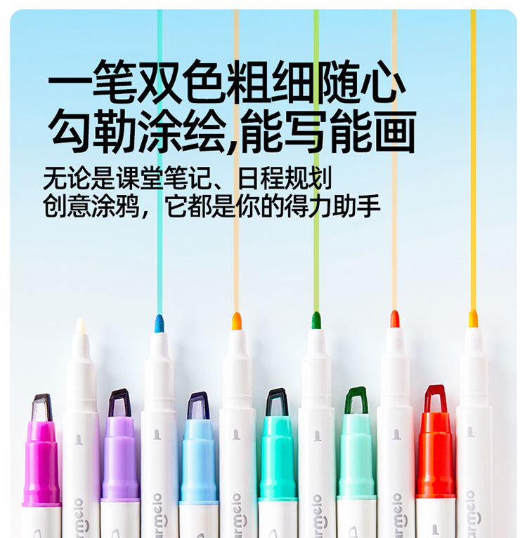 美乐童年变变荧光笔彩色划重点小学生专用初中生标记笔大容量可擦可变色高颜值ins风可视窗可叠色双头记号笔