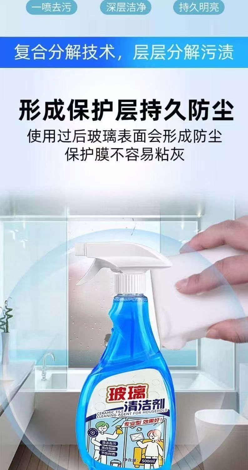【温和配方清新除味❗️一喷即净透亮持久】玻璃清洁剂家用浴室擦玻璃水浴室瓷砖强力除垢清洗剂玻璃镜面去污。jc