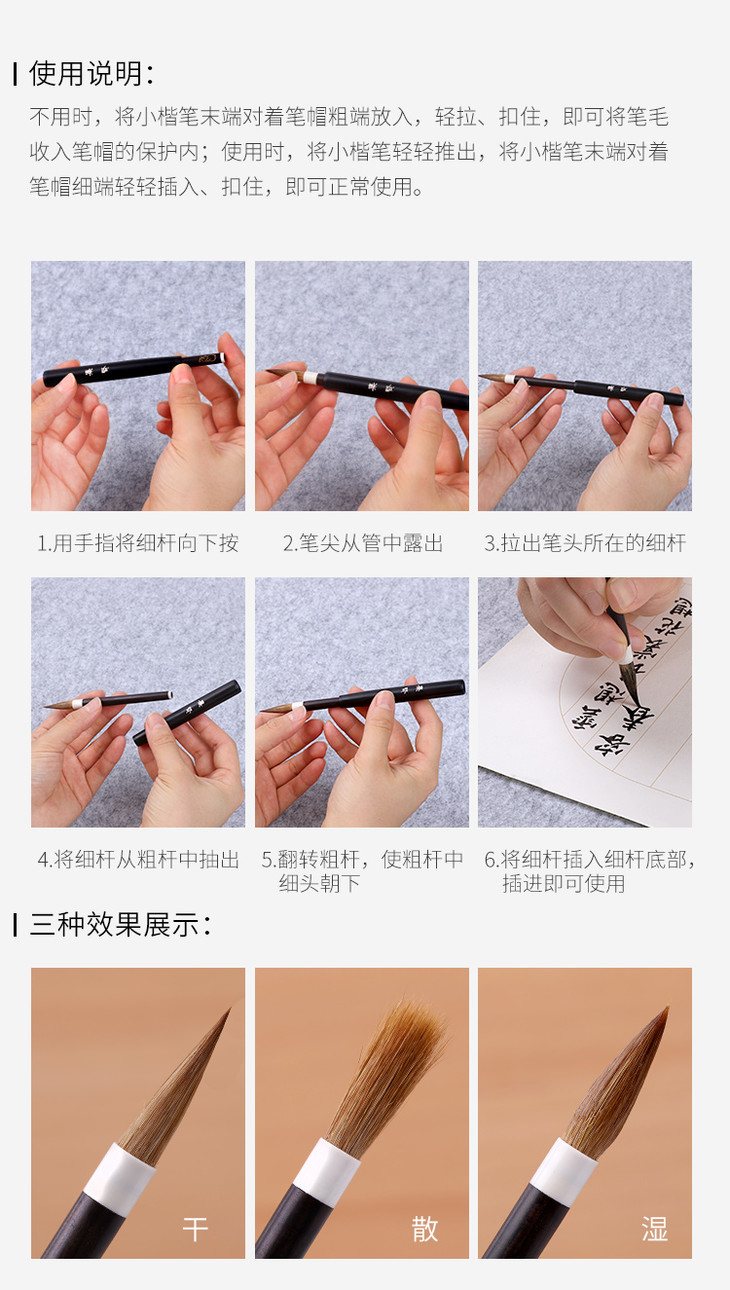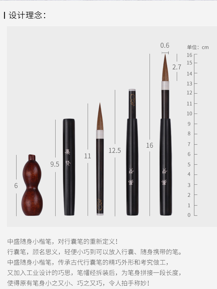 中盛毛笔套装带笔搁随身毛笔狼毫小楷笔初学钢笔式毛笔