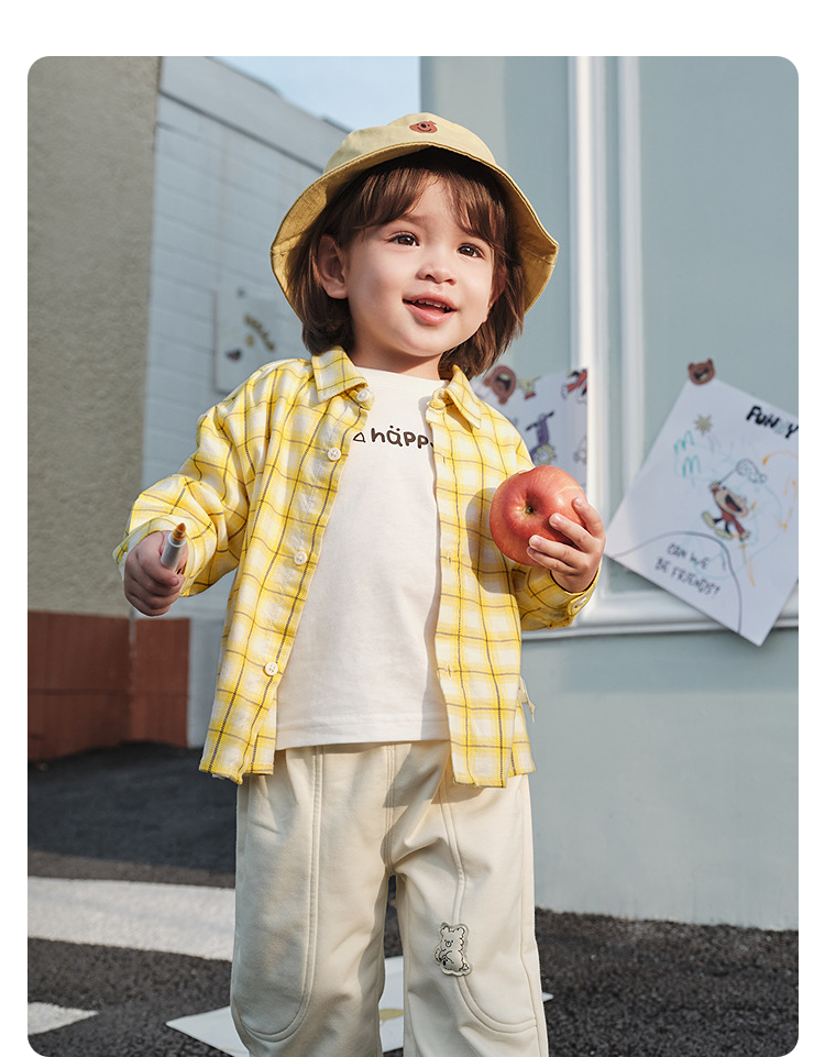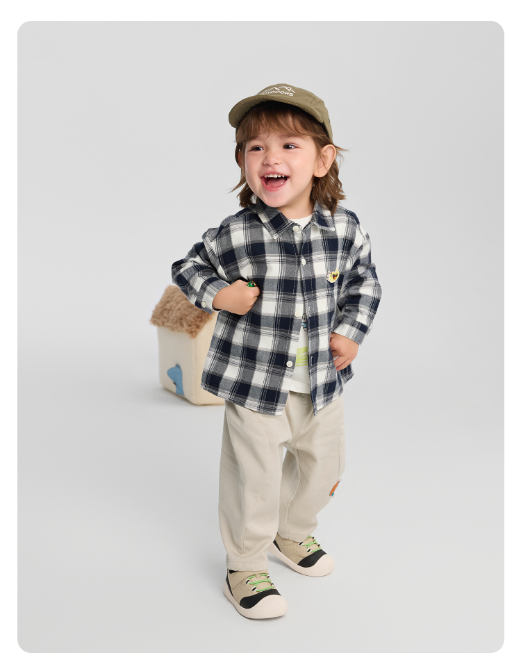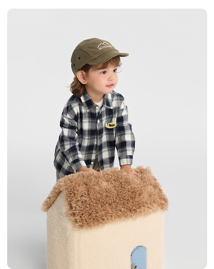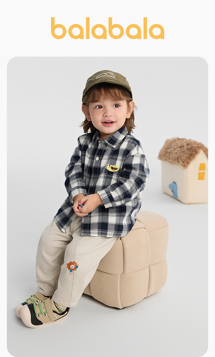 巴拉巴拉宝宝衬衫男童长袖2025新款格子外套秋超柔绒加厚亲肤舒适