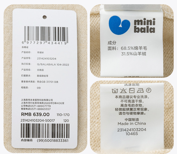 【mini亲子】迷你巴拉男女童儿童成人毛衫秋冬套头羊绒衫