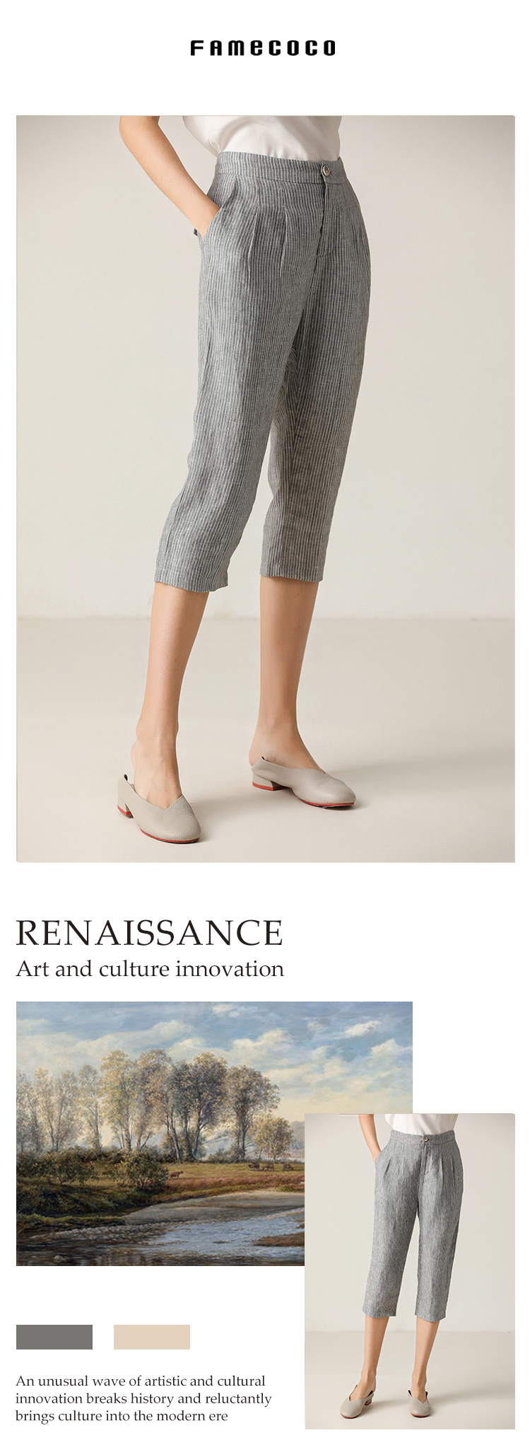 Famecoco范可儿休闲裤显瘦哈伦小脚七分裤女F203GA039