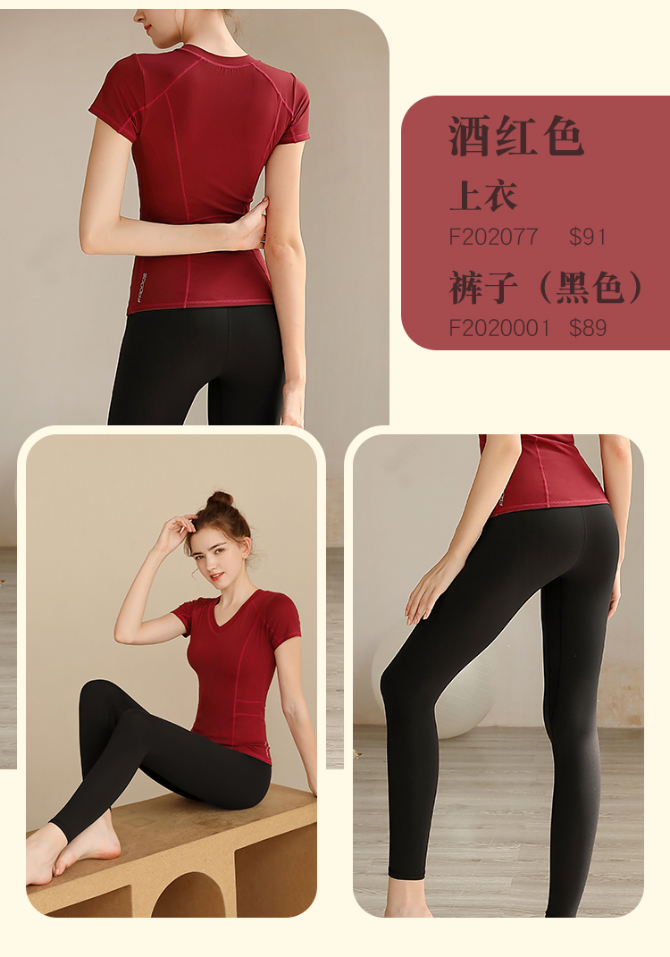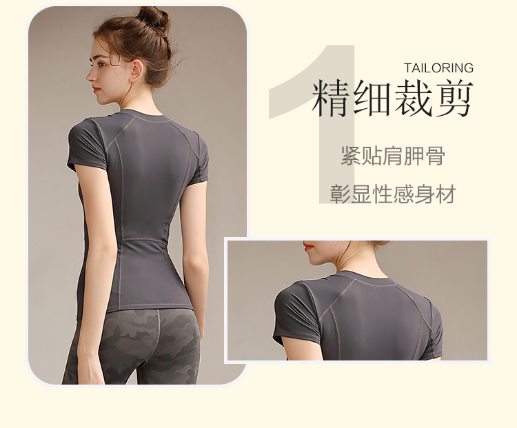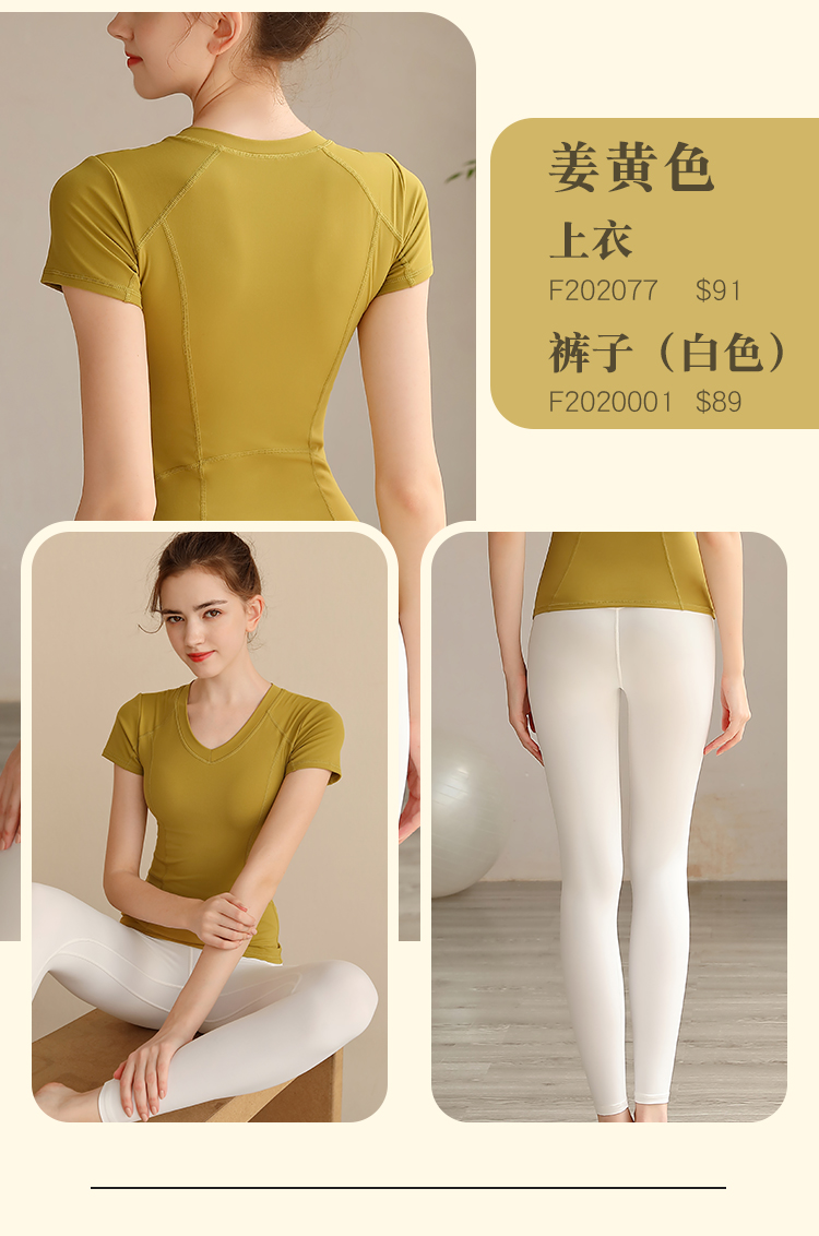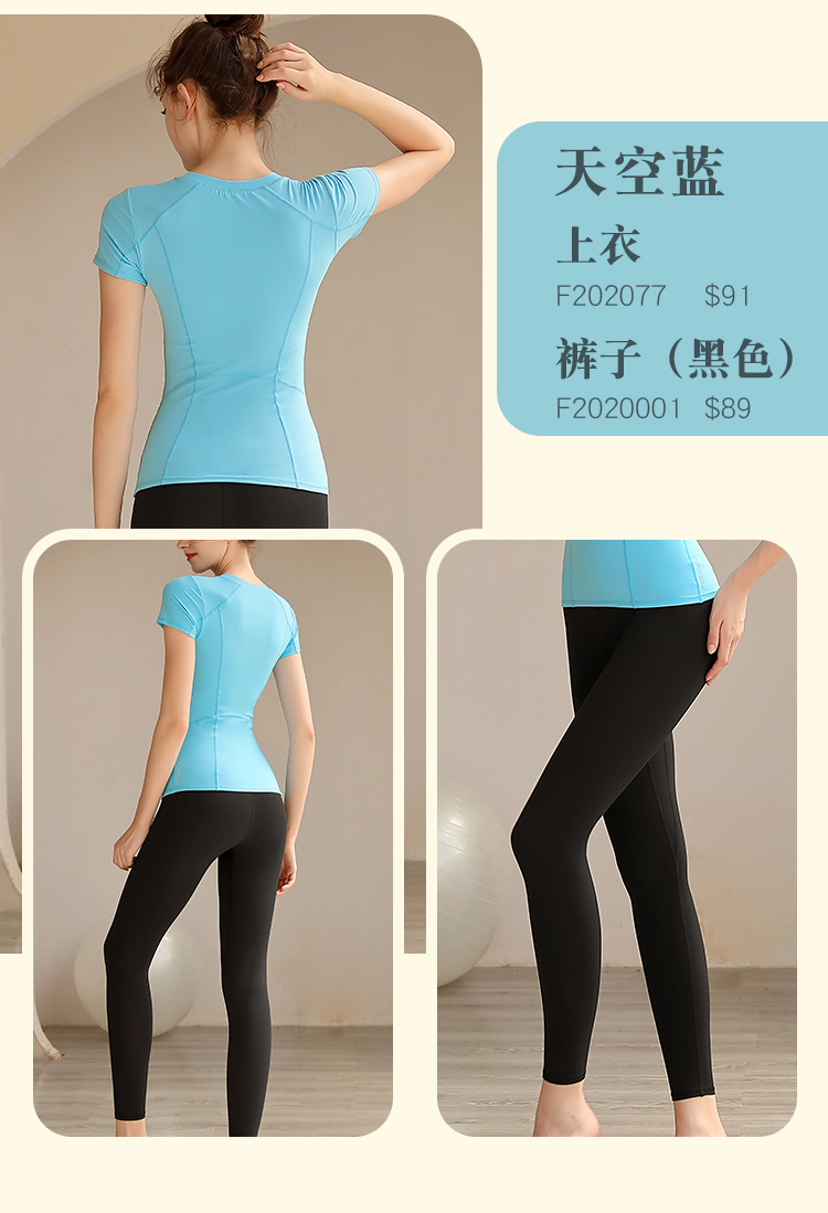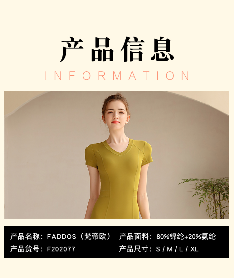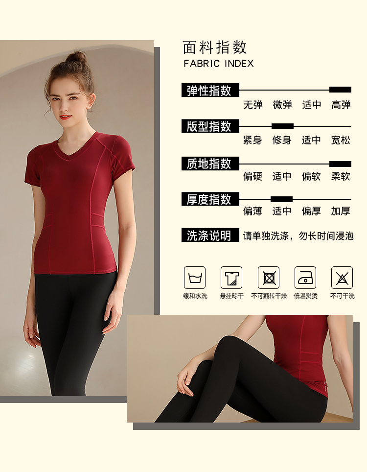 F202077梵蒂欧瑜伽短袖双面磨毛面料(含胸垫)