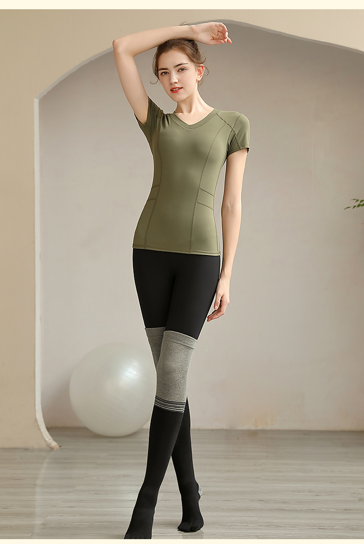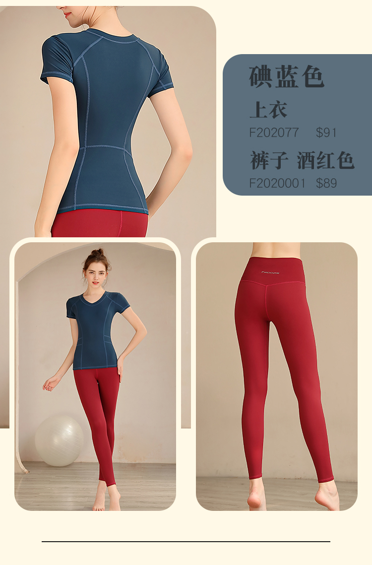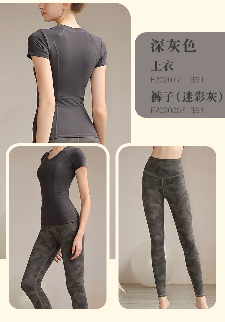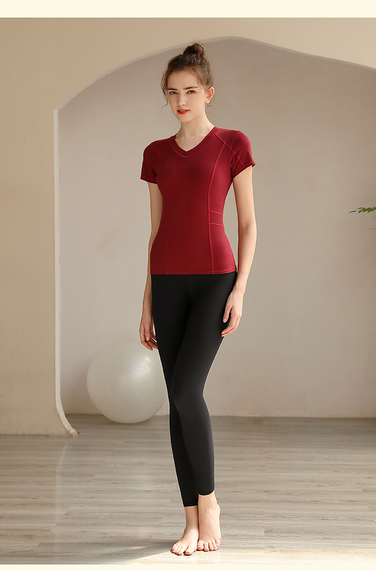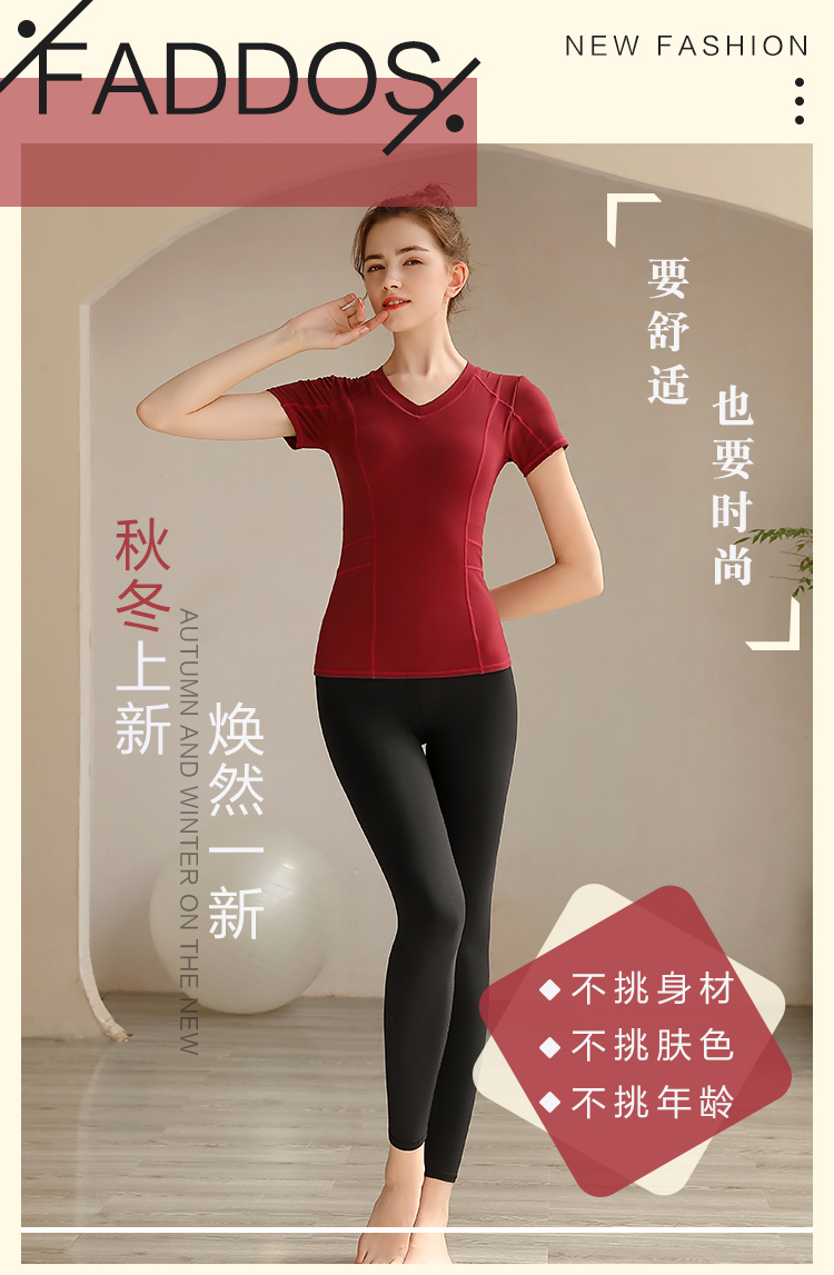 F202077梵蒂欧瑜伽短袖双面磨毛面料(含胸垫)