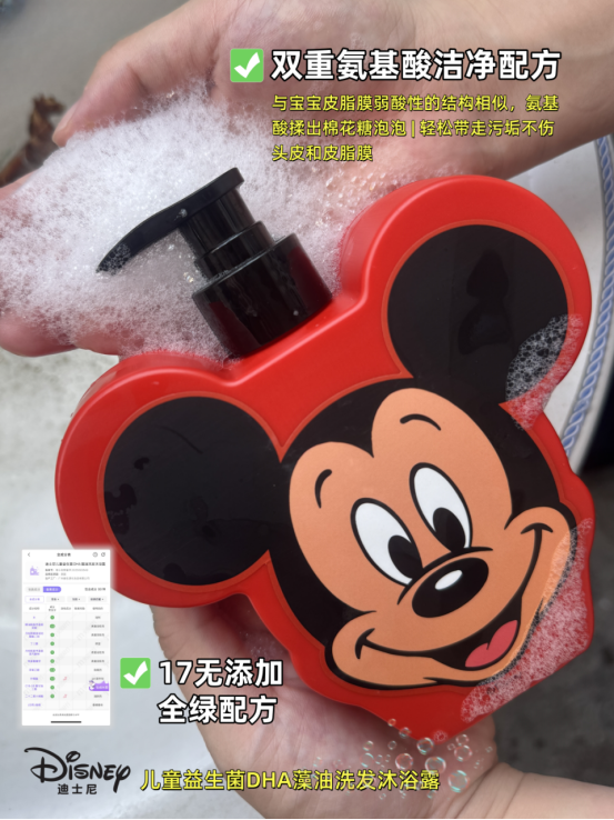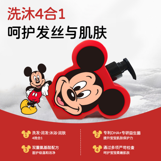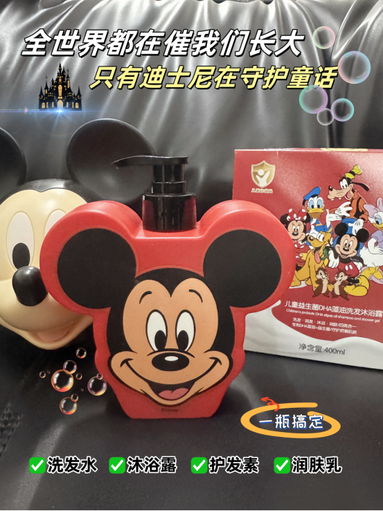 【迪士尼益生菌DHA藻油洗发沐浴露】 ✅ 洗发水√沐浴露√护发素√润肤乳√一瓶搞定 ✅ 专利DHA藻油:号称人体“脑黄金”,是婴幼儿神经系统和智力发育的主要营养元素🔹
