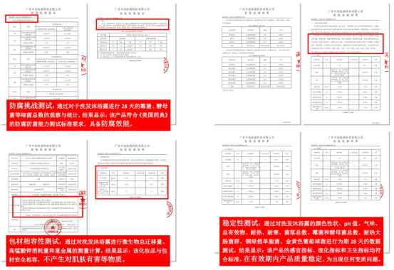 通过对于洗发沐浴露进行28天的霉菌、酵母菌等细菌总数的观察与统计,结果显示:该产品符合《美国药典》的防腐防菌能力测试标准要求,具备防腐效能。