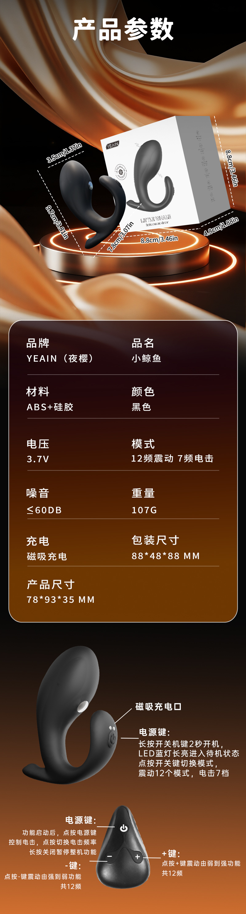 夜樱小鲸鱼男用微电流液态硅胶全包胶柔软防水肛门后庭肛塞