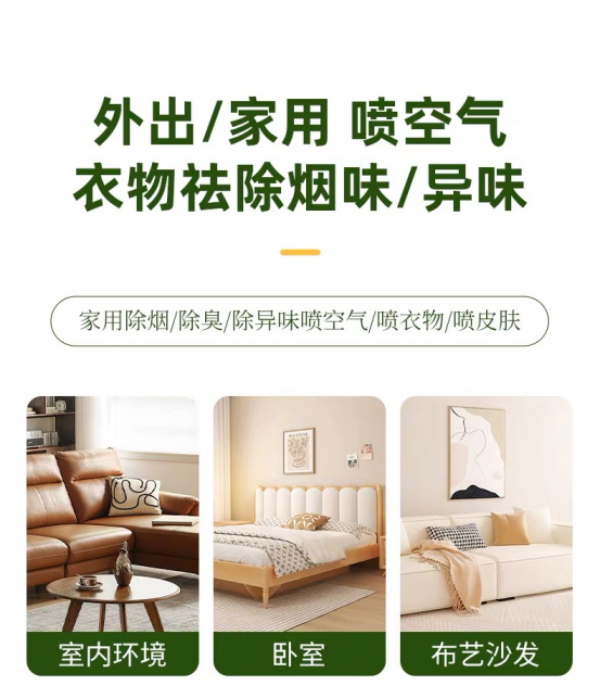 运动鞋柜:喷两下,隔天打开只有淡淡清香,汗味神奇消失! 洗手间:再也不怕尴尬,异味秒散,还带杀菌效果 吃完火锅的房间:对着窗帘、沙发喷一喷,油烟味去无踪,只留清爽!