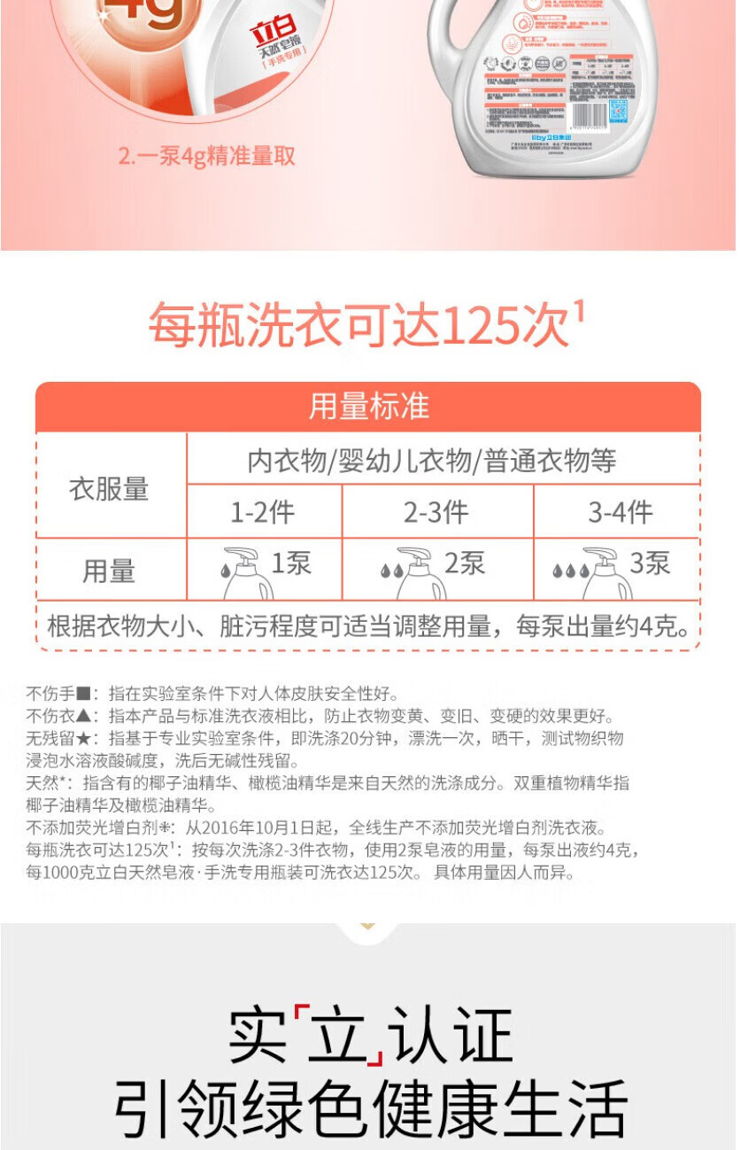 立白 馨香洗衣液1kg*2瓶装4斤 香味持久 深层清洁