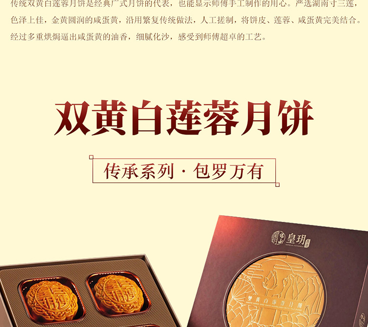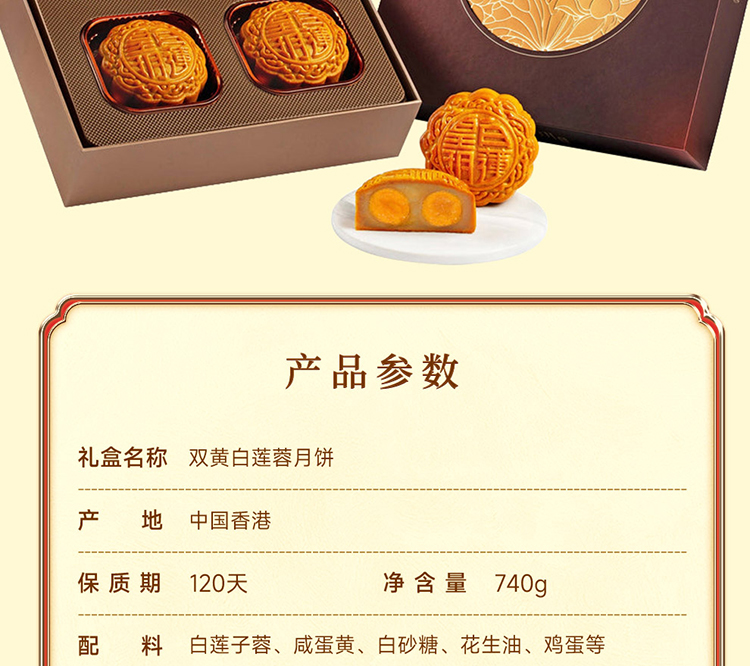 香港进口皇玥 双黄白莲蓉月饼 740g礼盒装 4个月饼