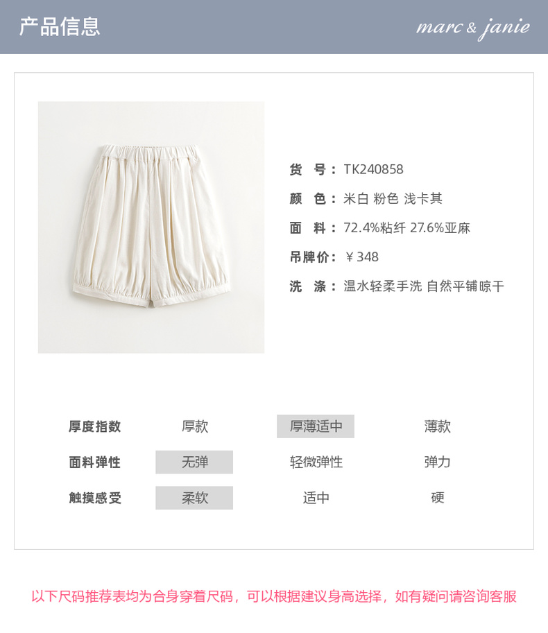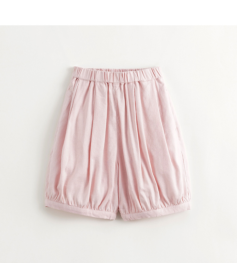 马克珍妮女童清凉五分亚麻灯笼裤儿童裤子2024年夏装新款240858