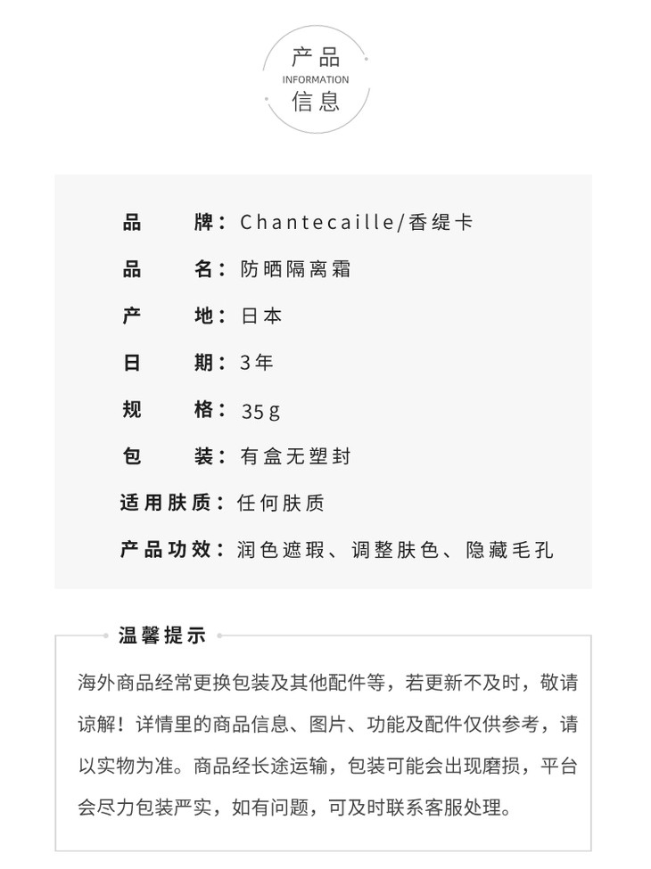 Chantecaille/香缇卡 润色养肤防晒裸妆隔离SPF15 保湿隔离霜35g