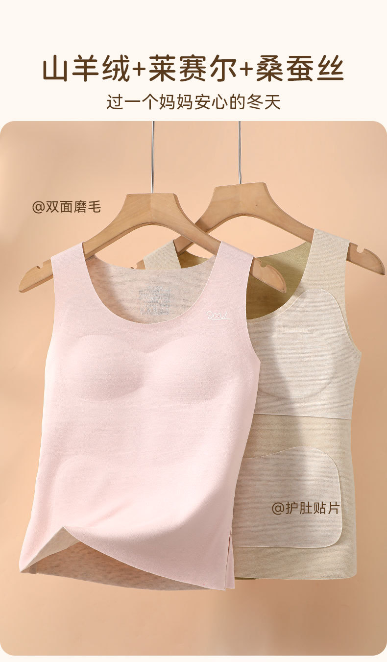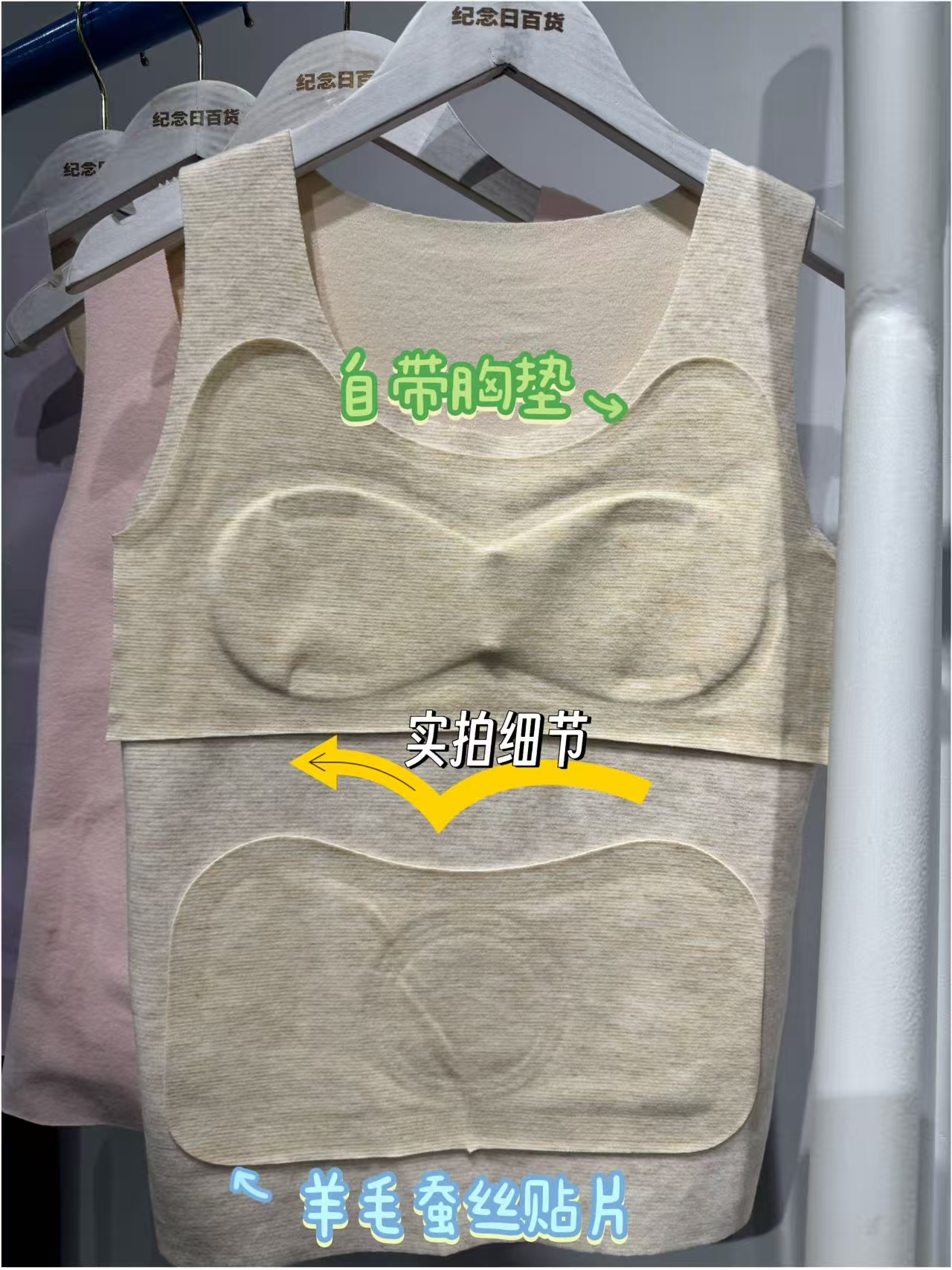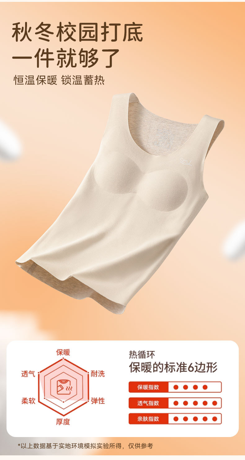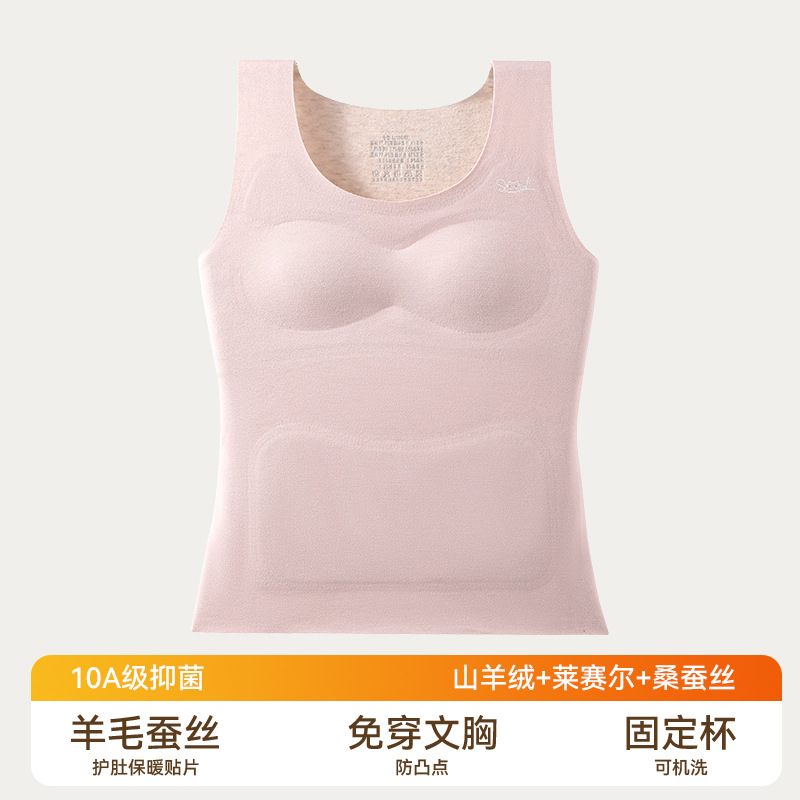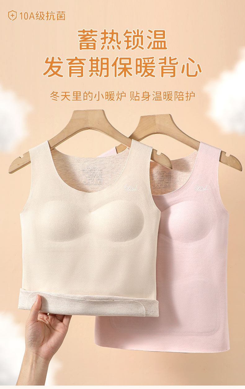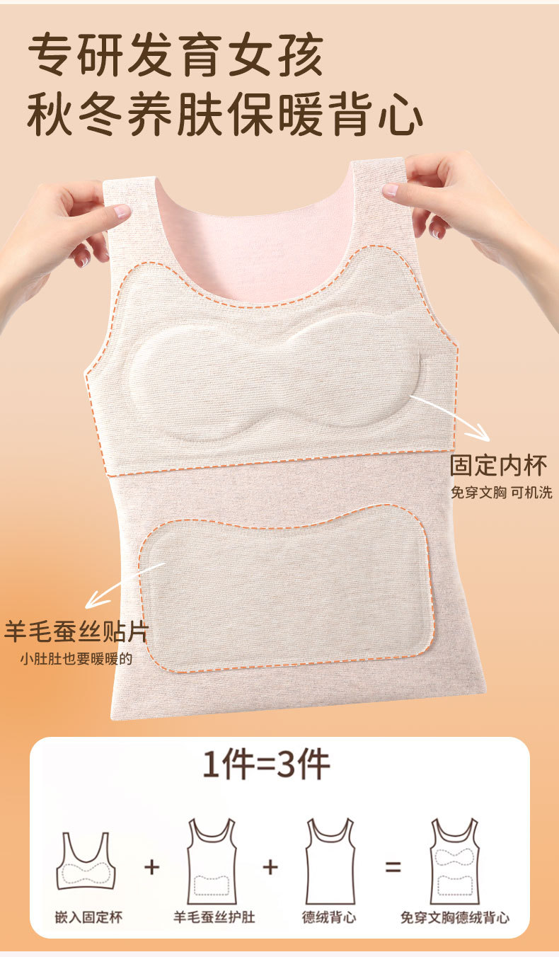 【GZ】无忧购无痕少女发育期内衣保暖背心秋冬女大童打底羊毛发热桑蚕丝带胸垫3128(截单后3-5天发货)