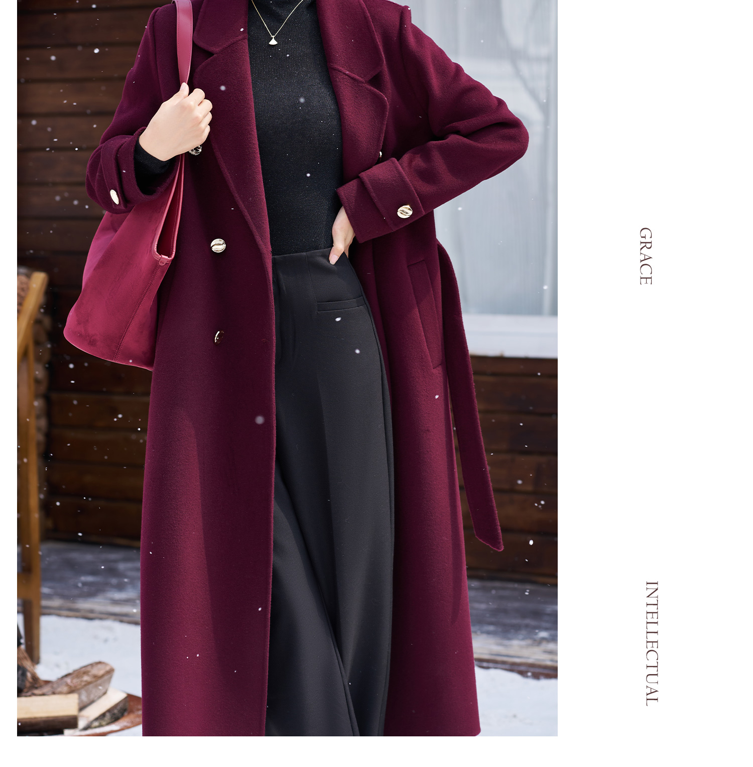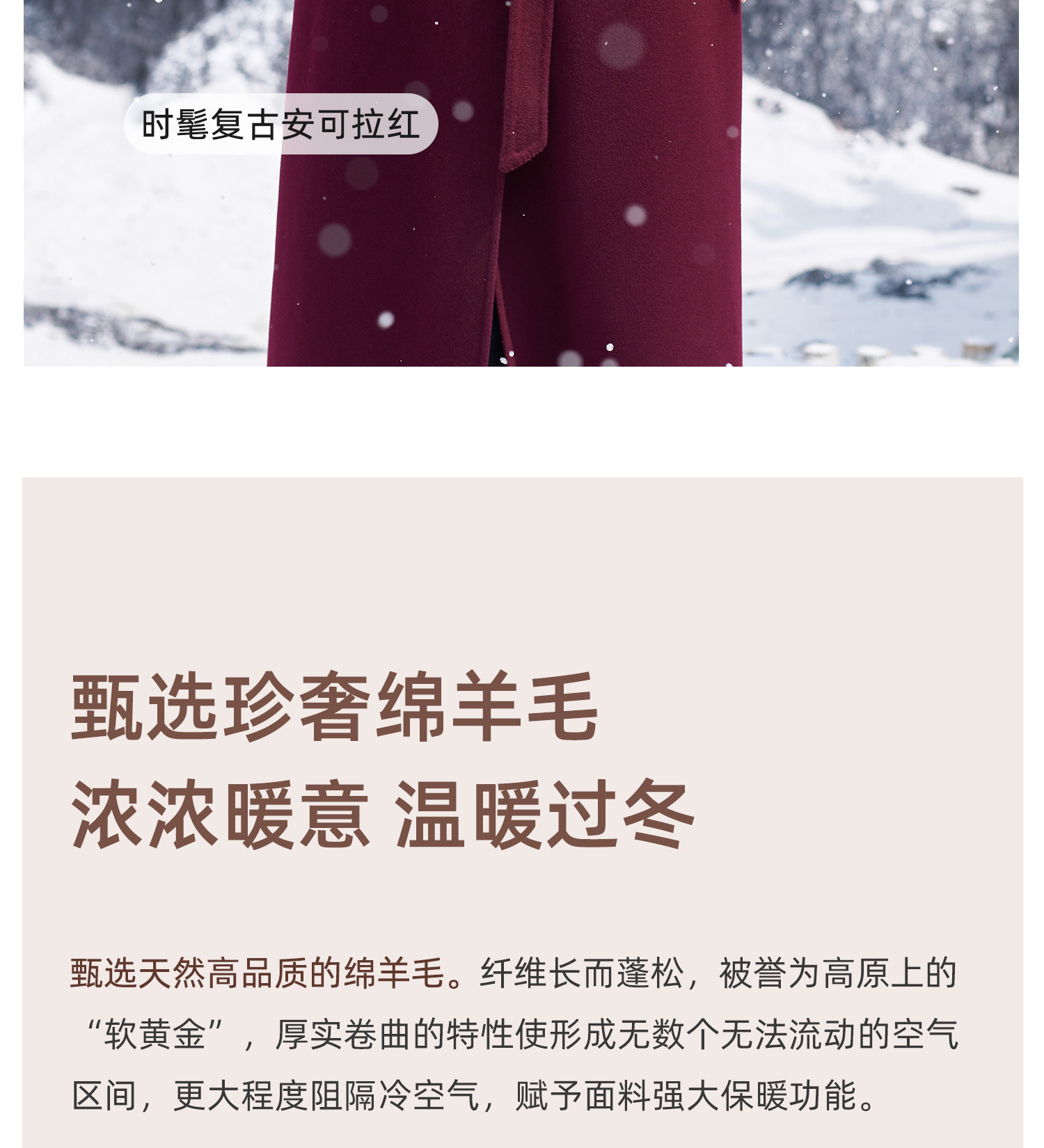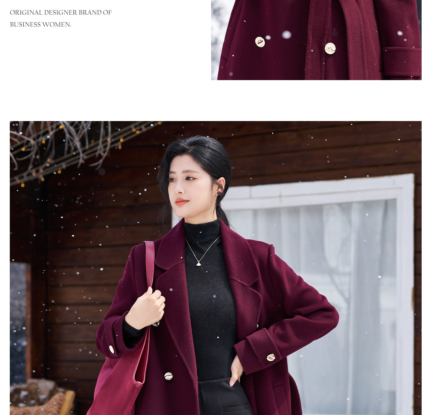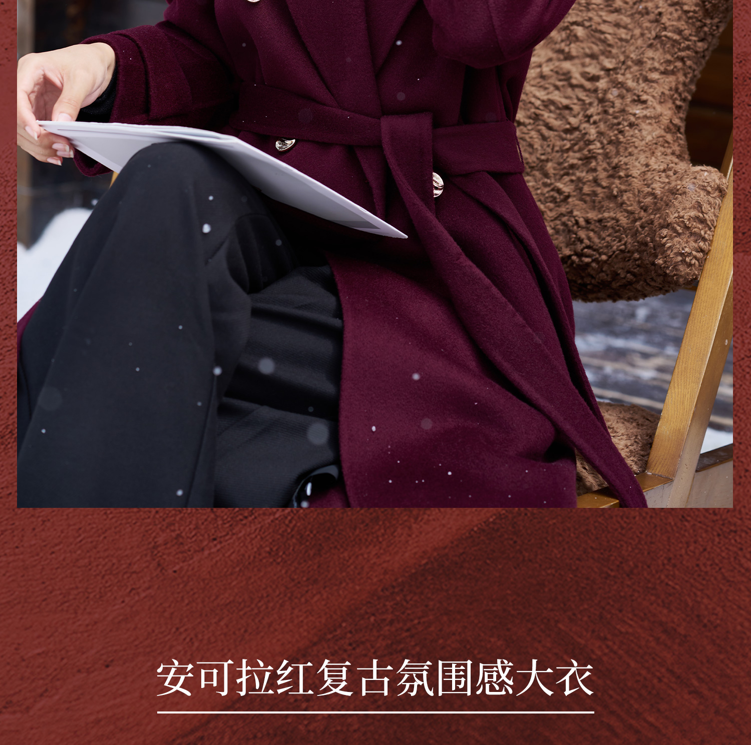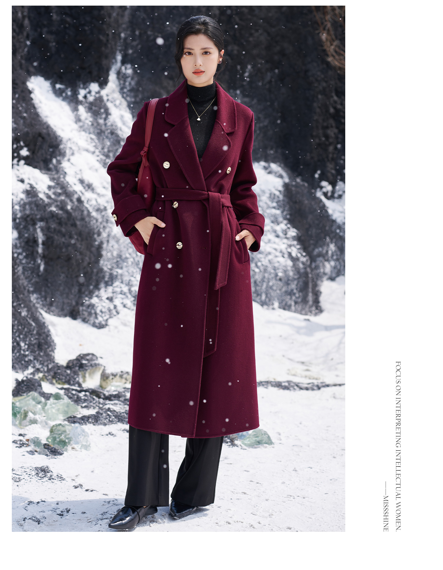【山羊绒双面羊绒羊毛大衣】米思阳2025冬季法式赫本过膝风衣毛呢大衣厚外套4698