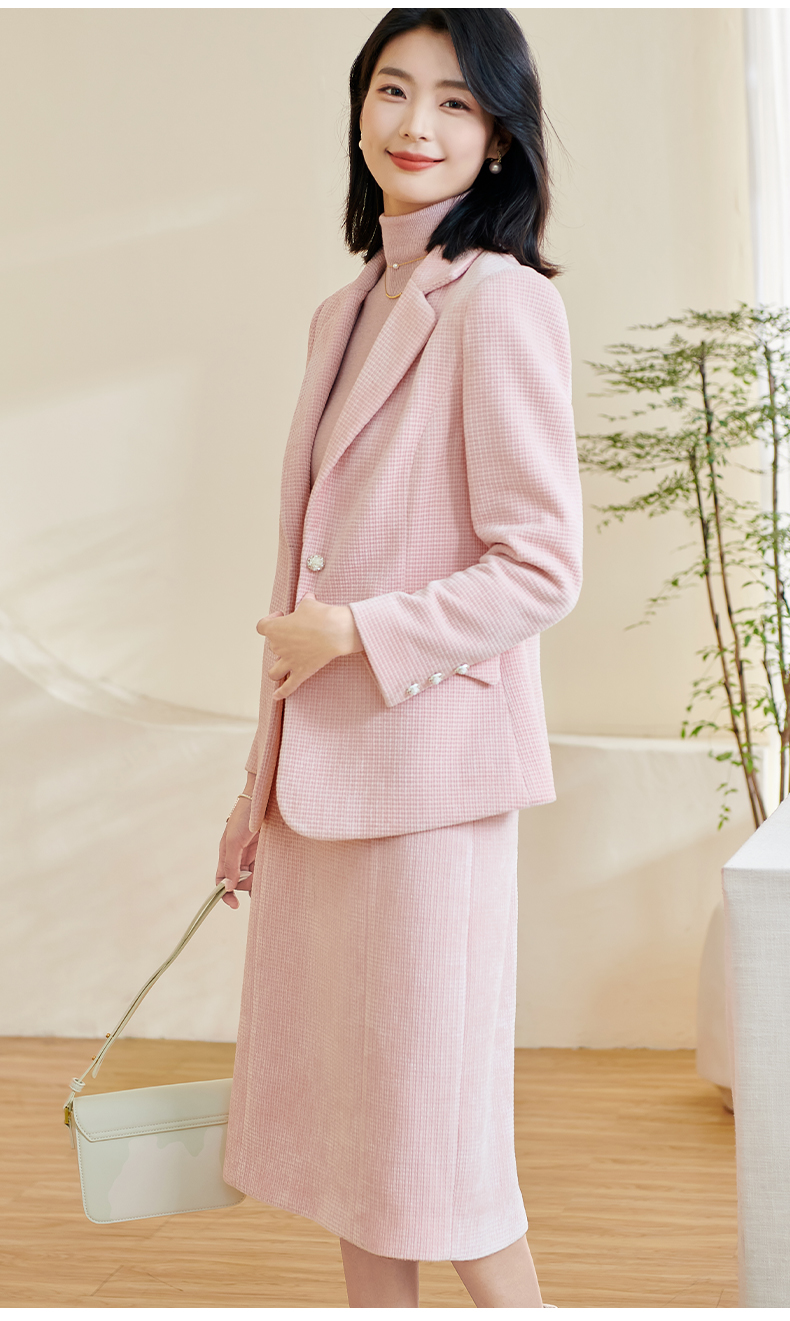 剩S/L/XL/XXL 米思阳2026春季新款温柔气质时尚套装收腰保暖职业裙子两件套3674