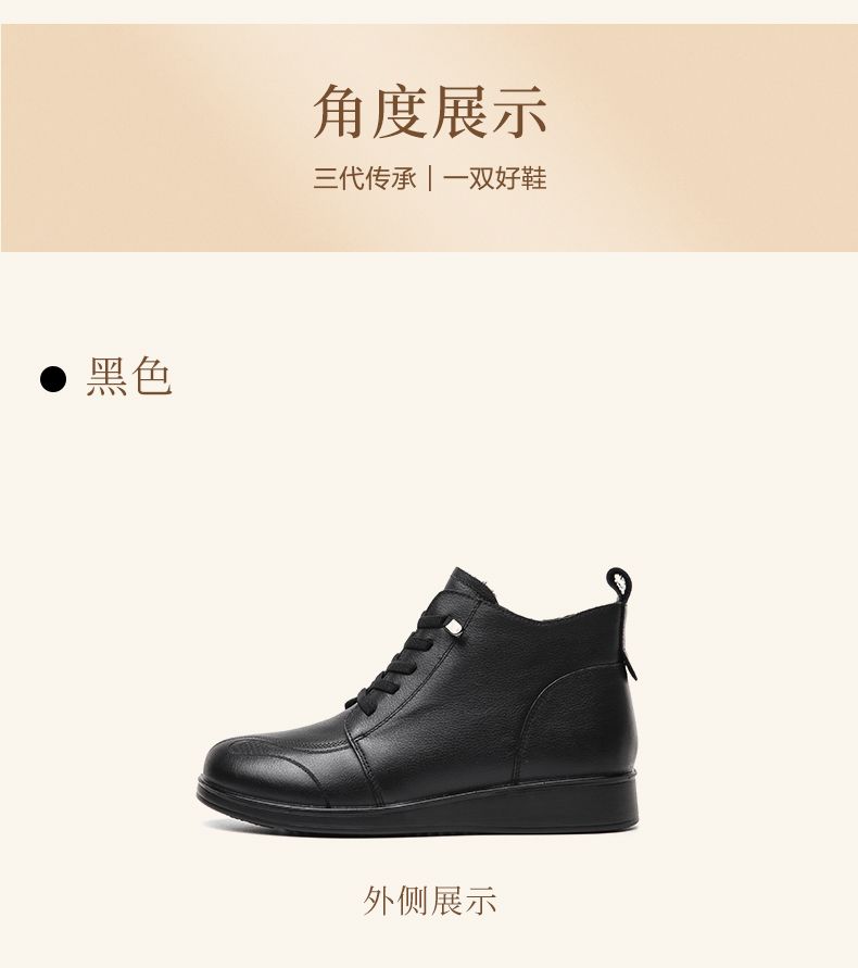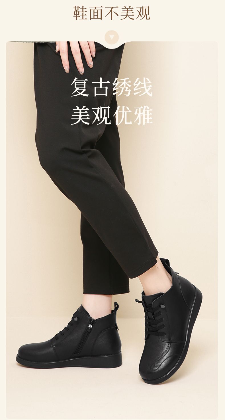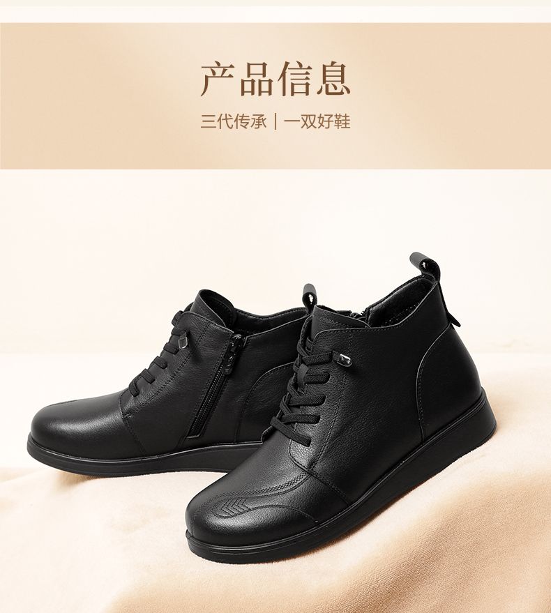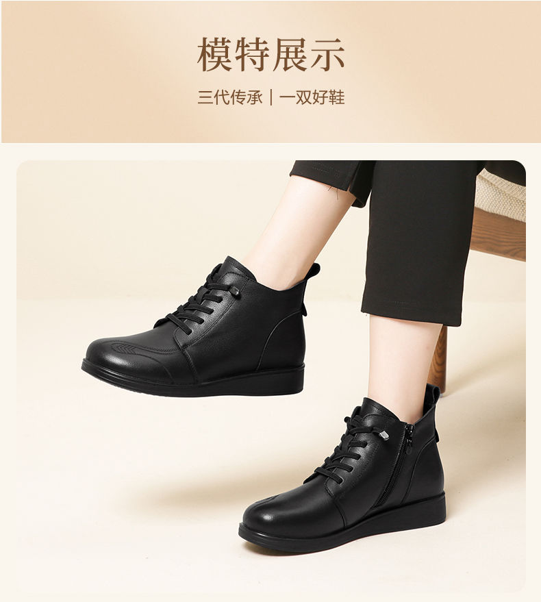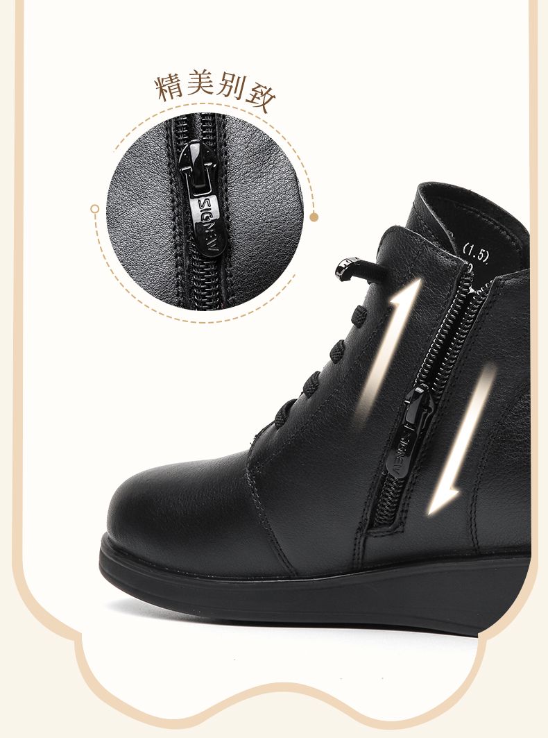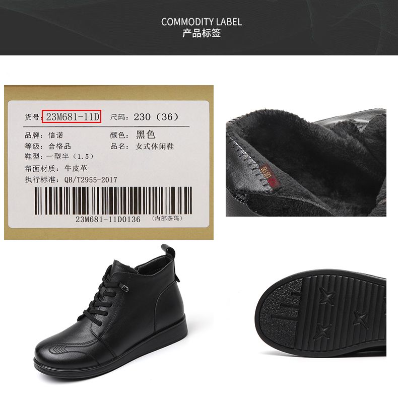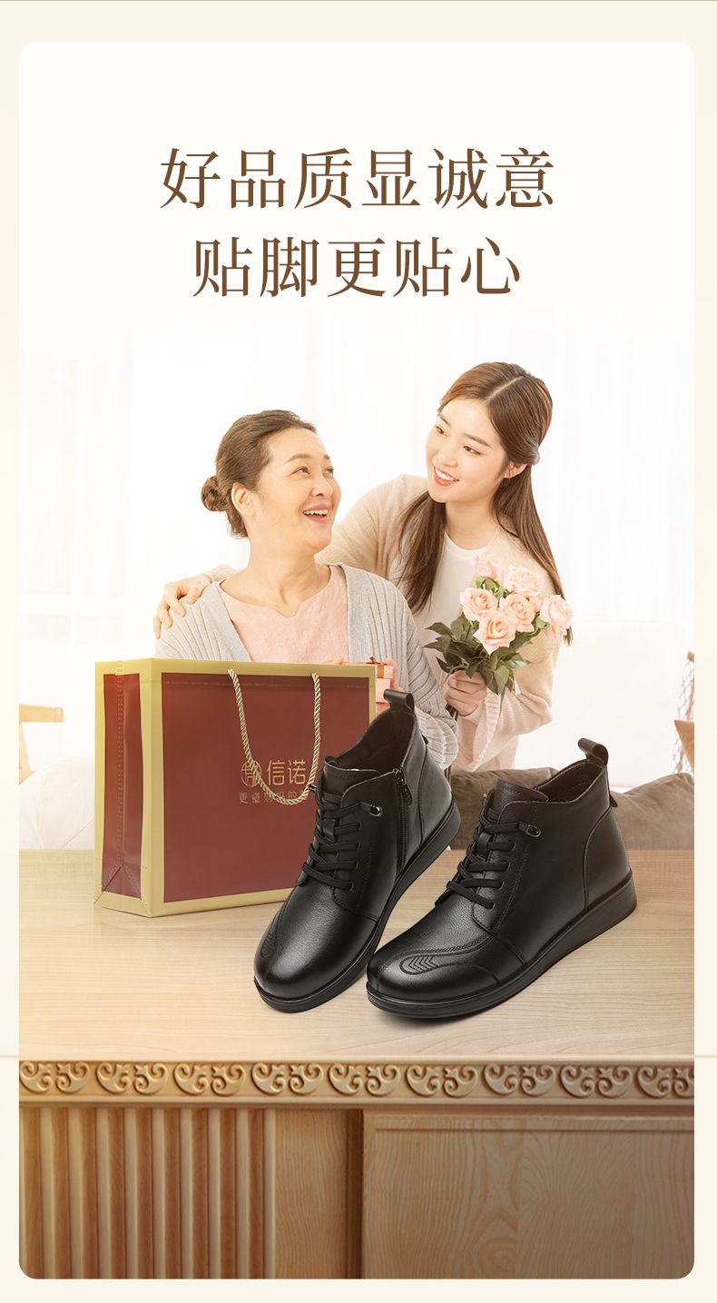 信诺真皮保暖短靴女2023新款秋冬季妈妈鞋子防滑软底棉鞋加绒皮鞋23M681-11D