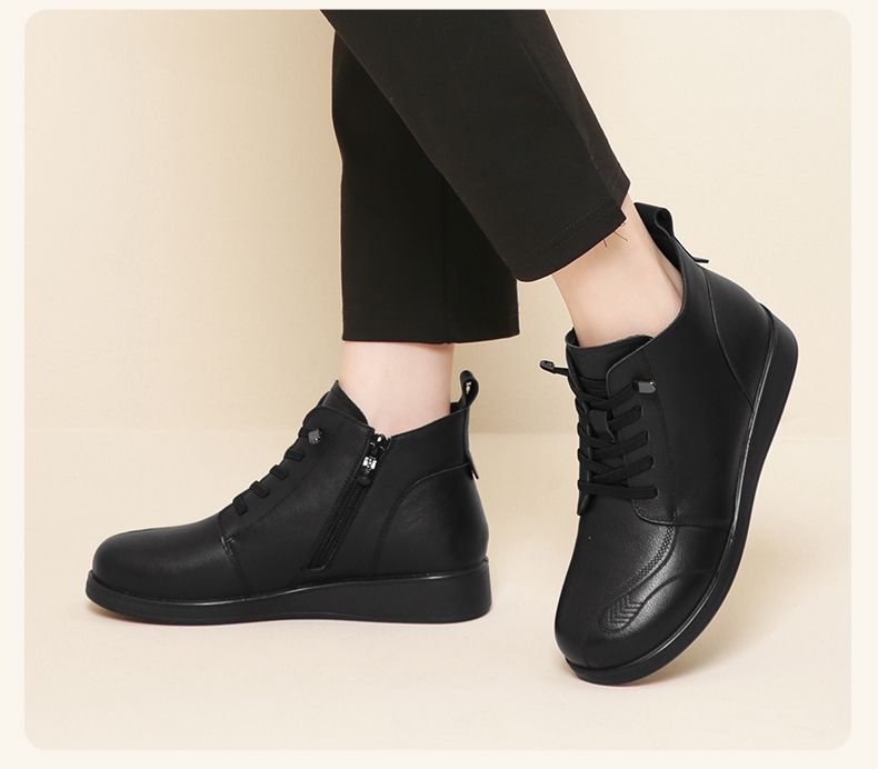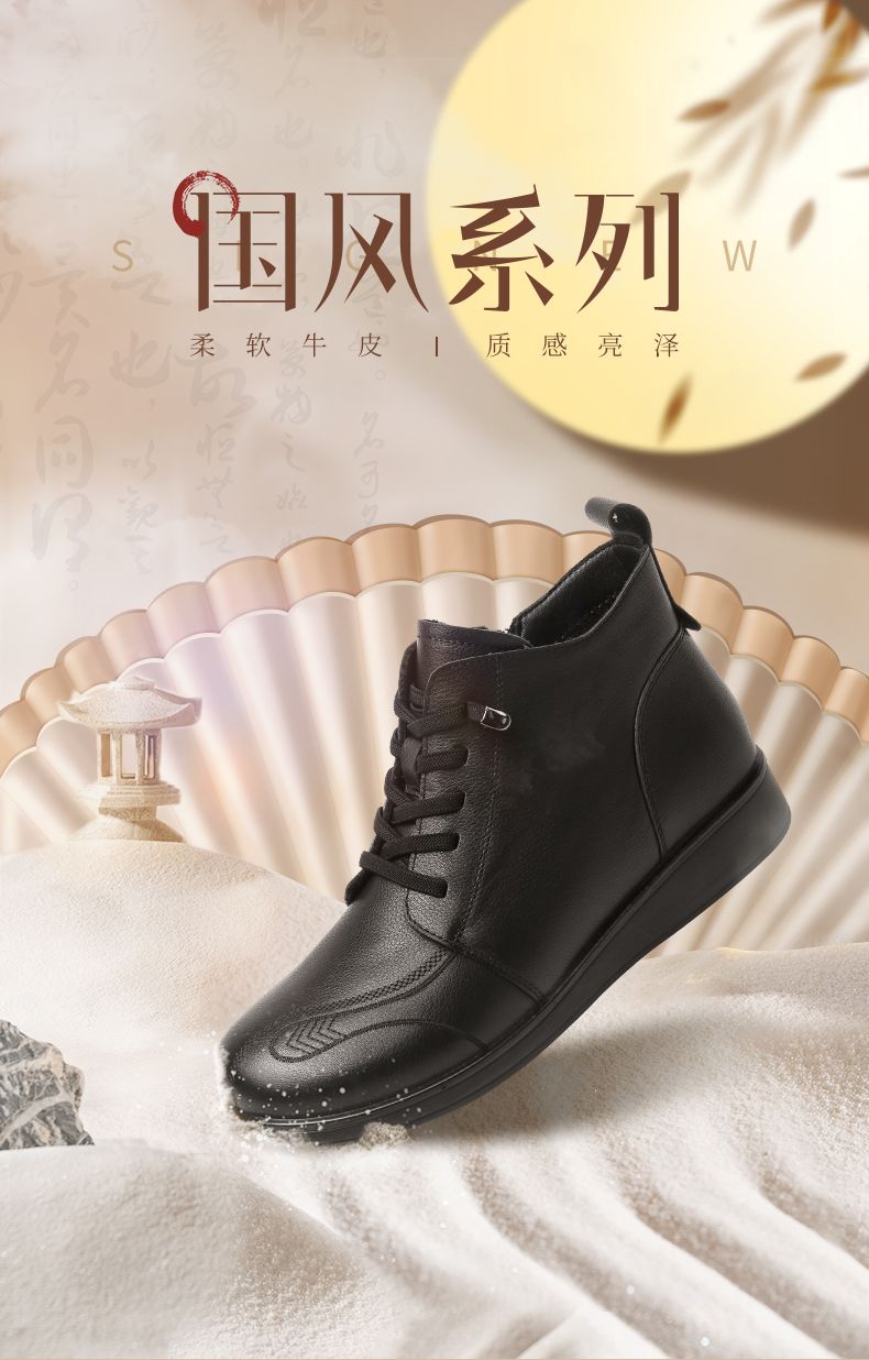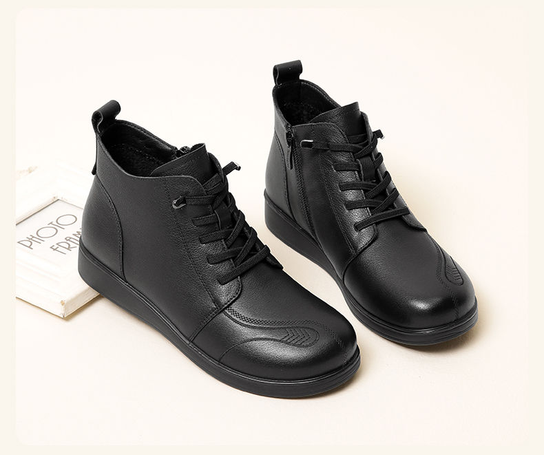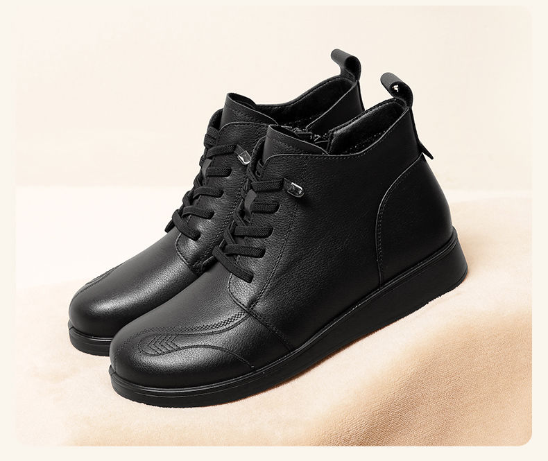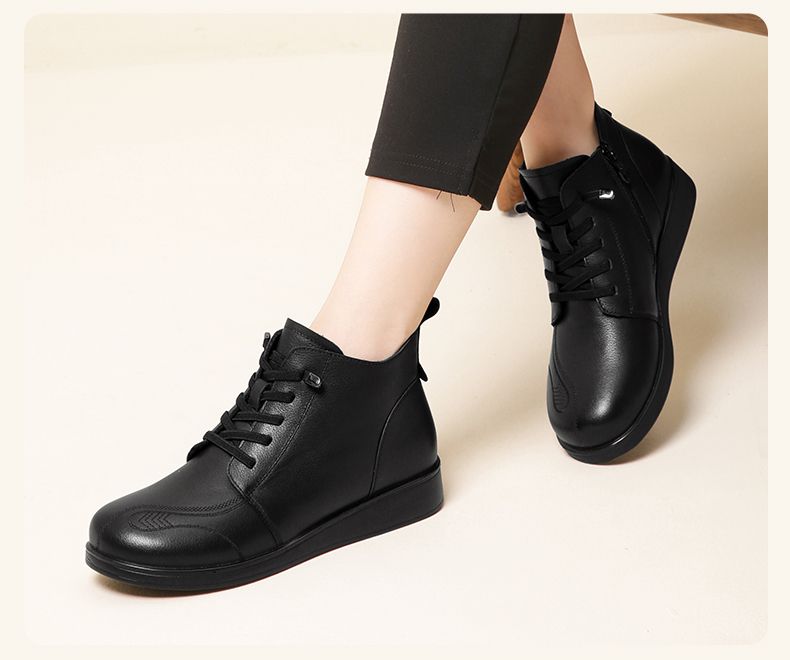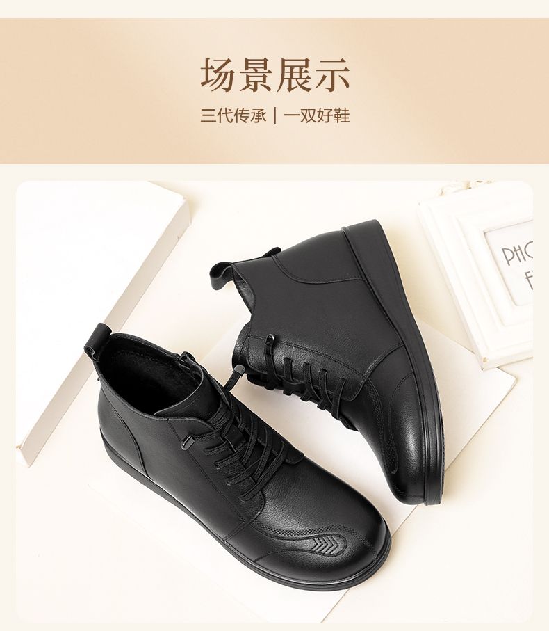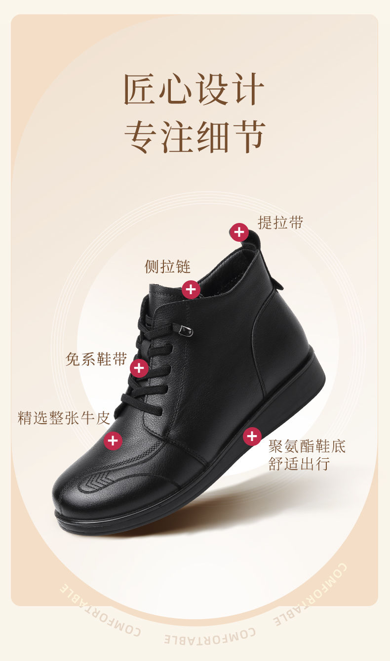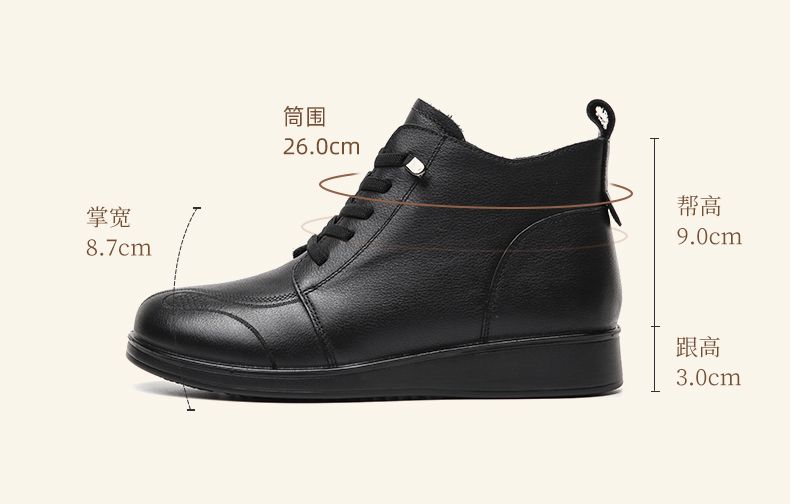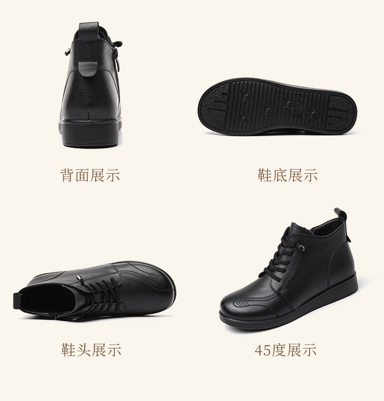 信诺真皮保暖短靴女2023新款秋冬季妈妈鞋子防滑软底棉鞋加绒皮鞋23M681-11D