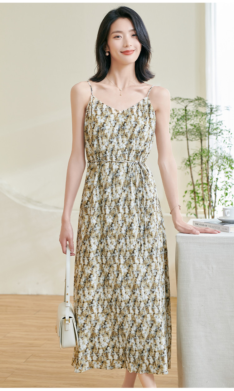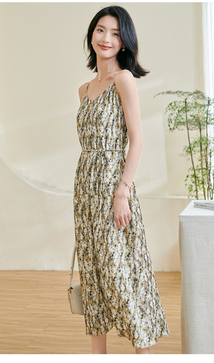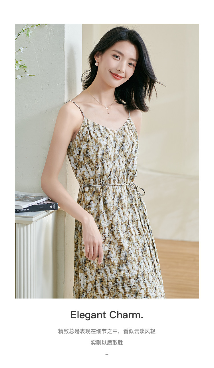 「锦色花影」吊带裙 重工波浪压褶 米思阳2026春季别致高级感吊带长裙修身连衣裙女0141
