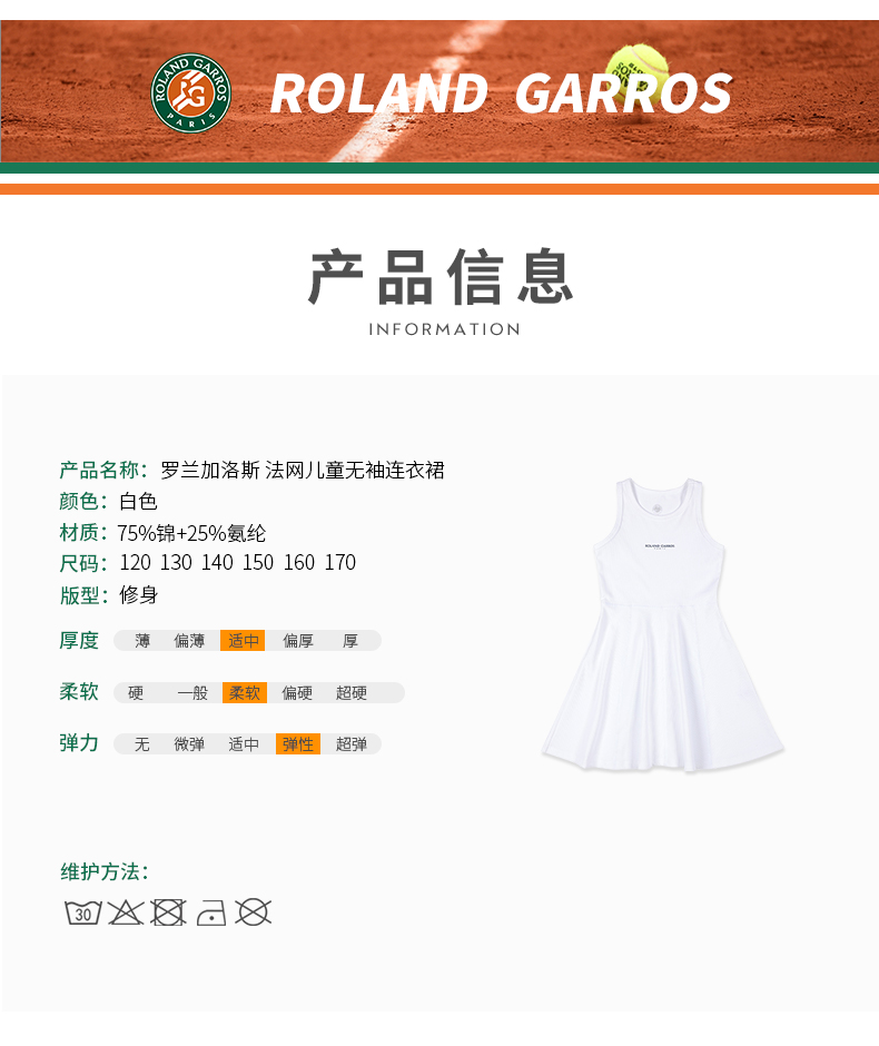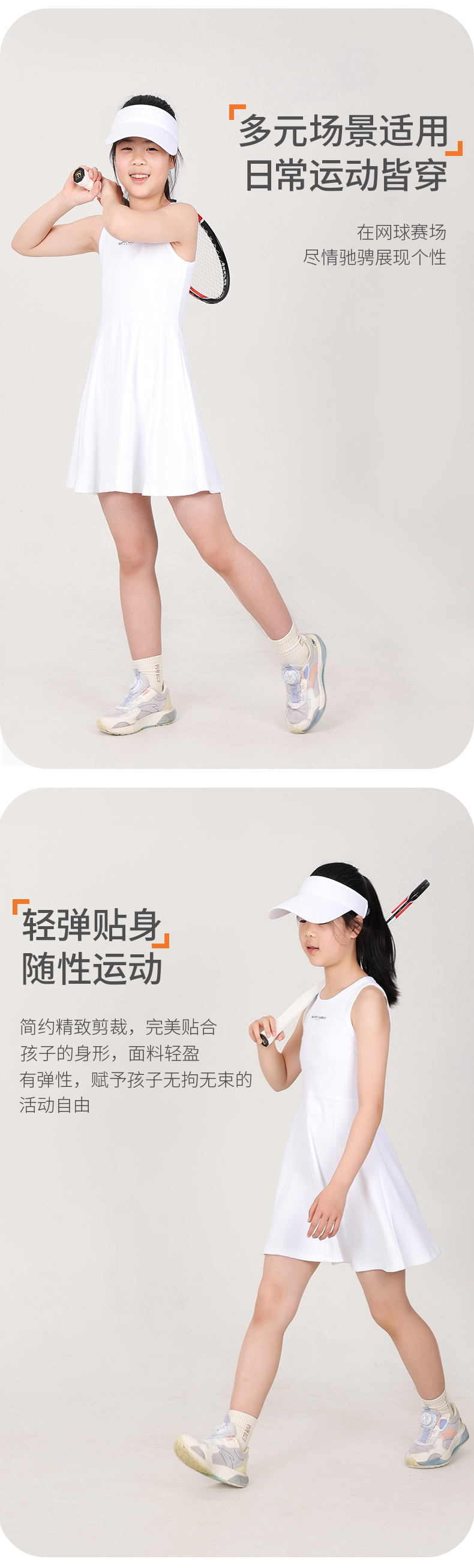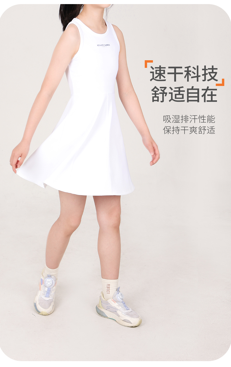 罗兰加洛斯女童连衣裙夏季儿童运动网球裙新款弹力速干透气