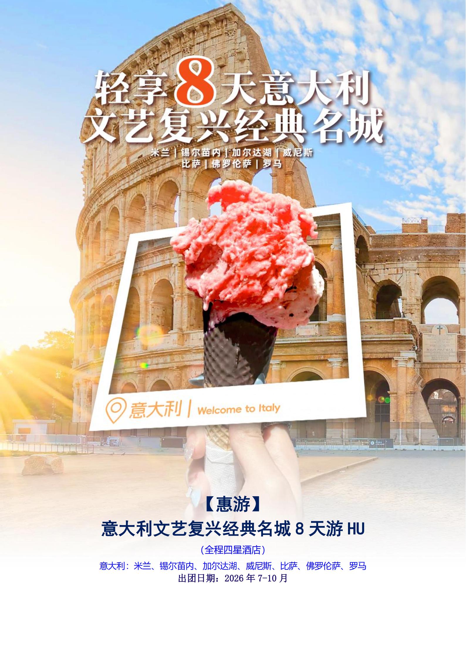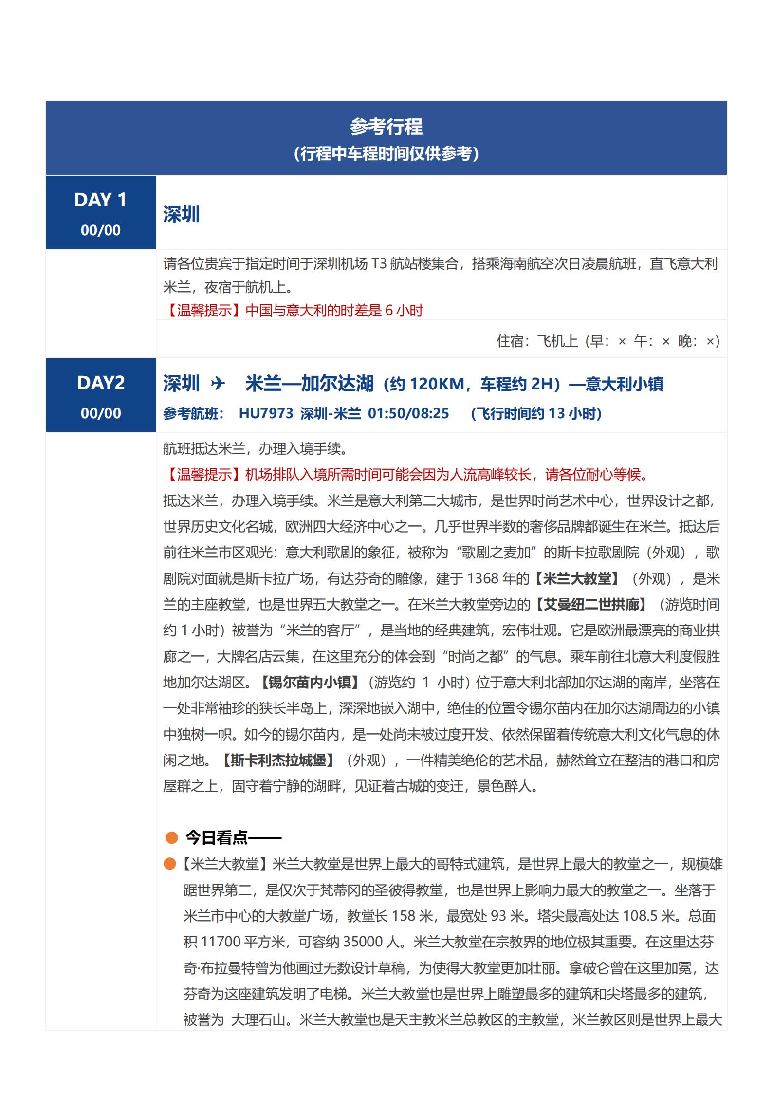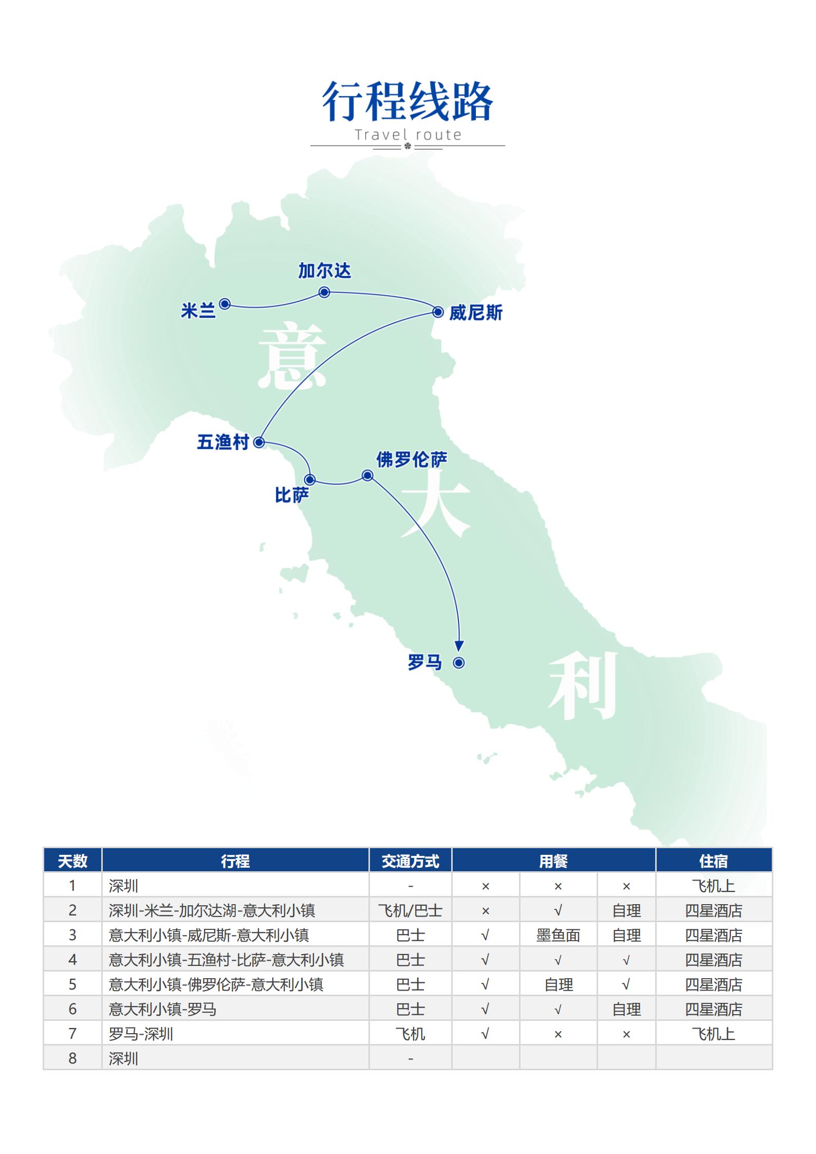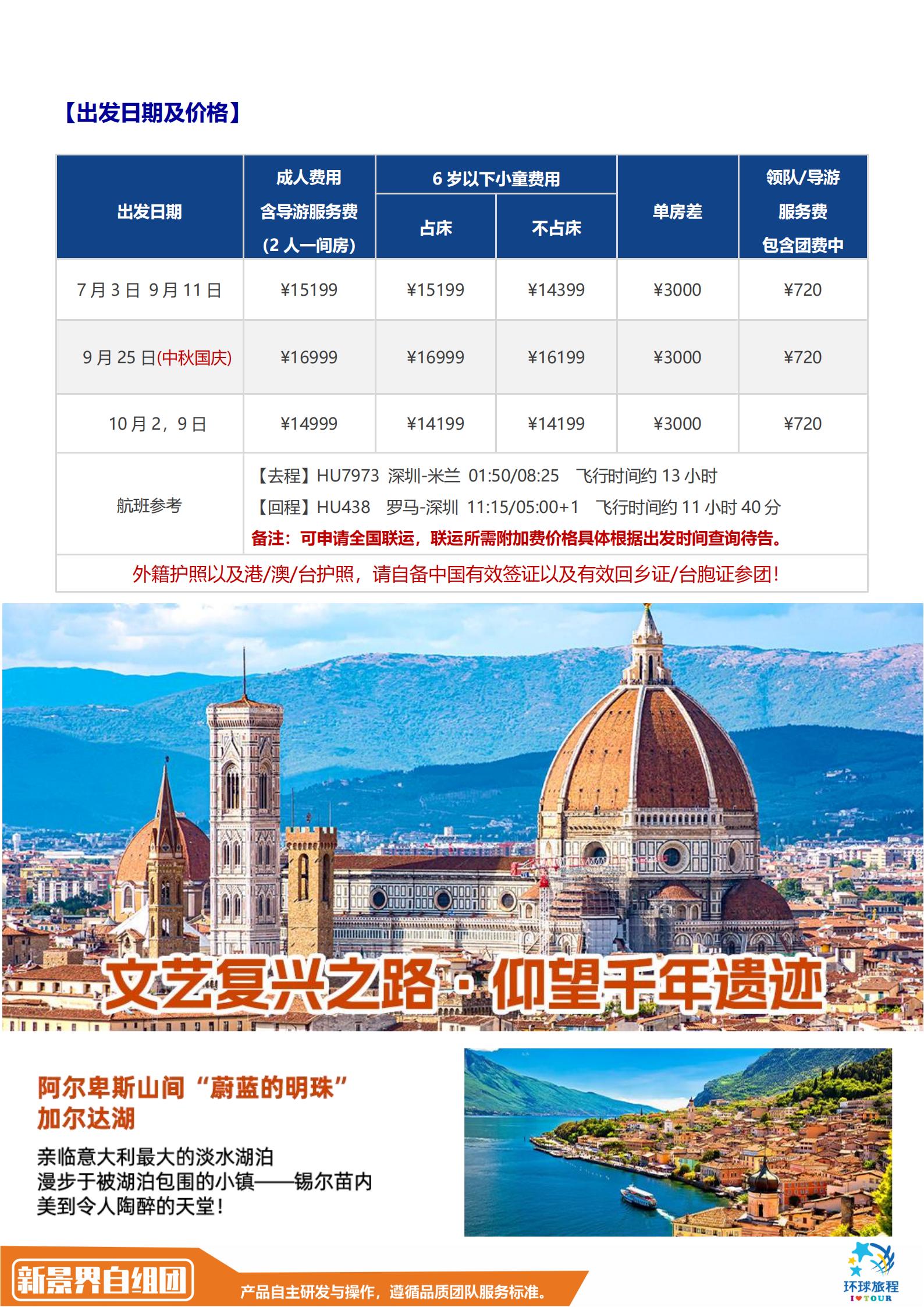 【暑假、国庆特惠游】<意大利文艺复兴经典名城8天游(深圳直飞往返)>米兰、锡尔苗内、加尔达湖、威尼斯、比萨、佛罗伦萨、罗马