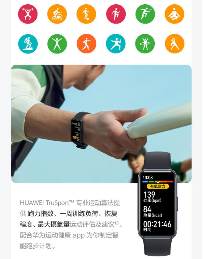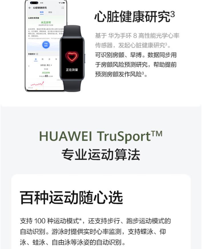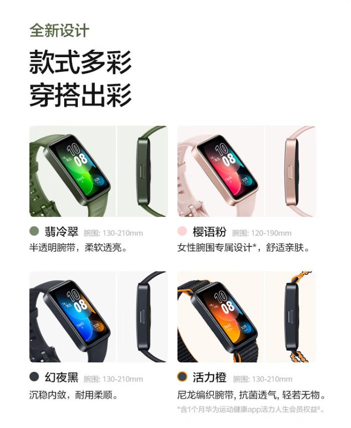华为HUAWEI手环8 NFC版 轻薄设计 心率、血氧、睡眠监测 磁吸快充