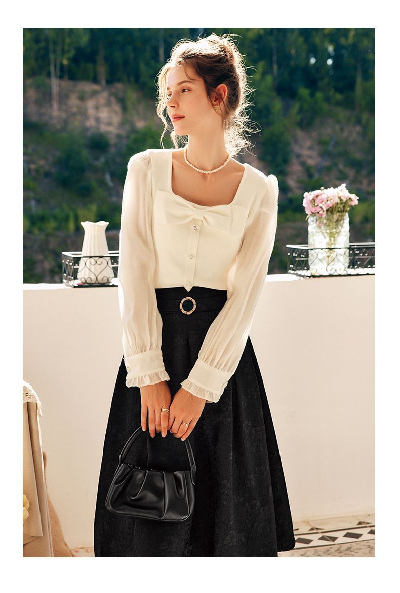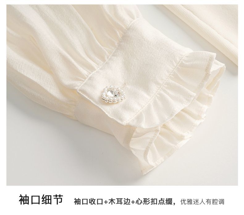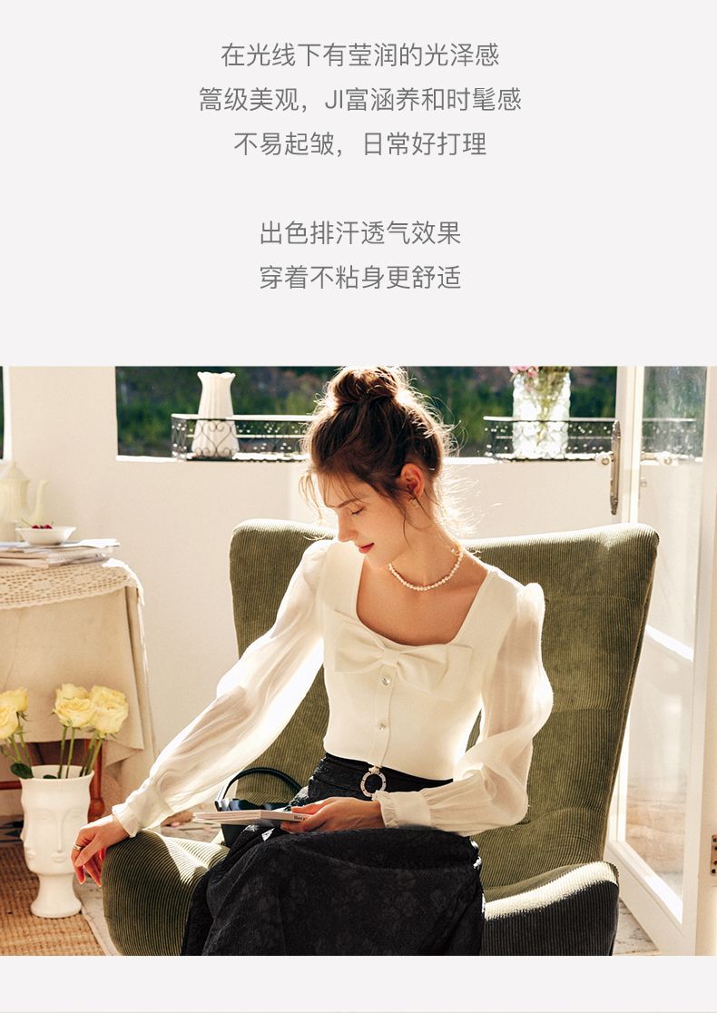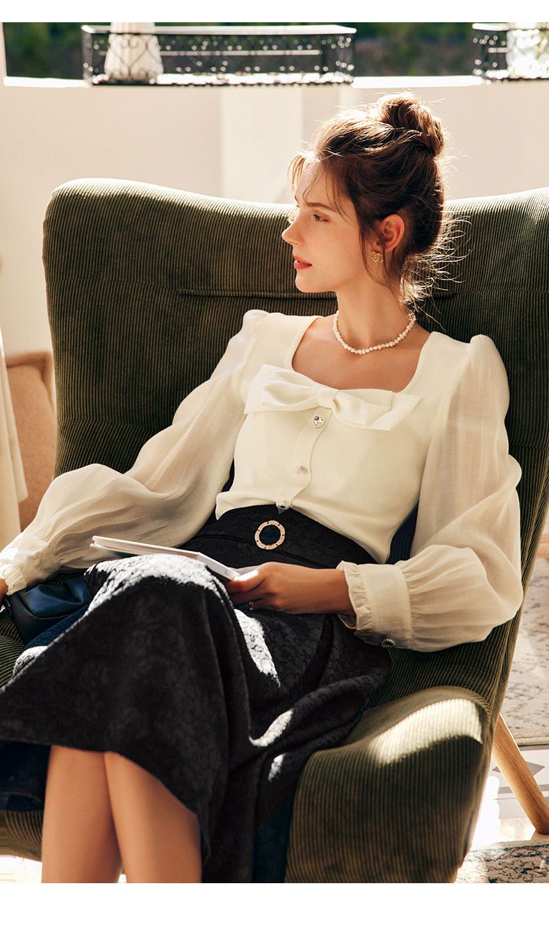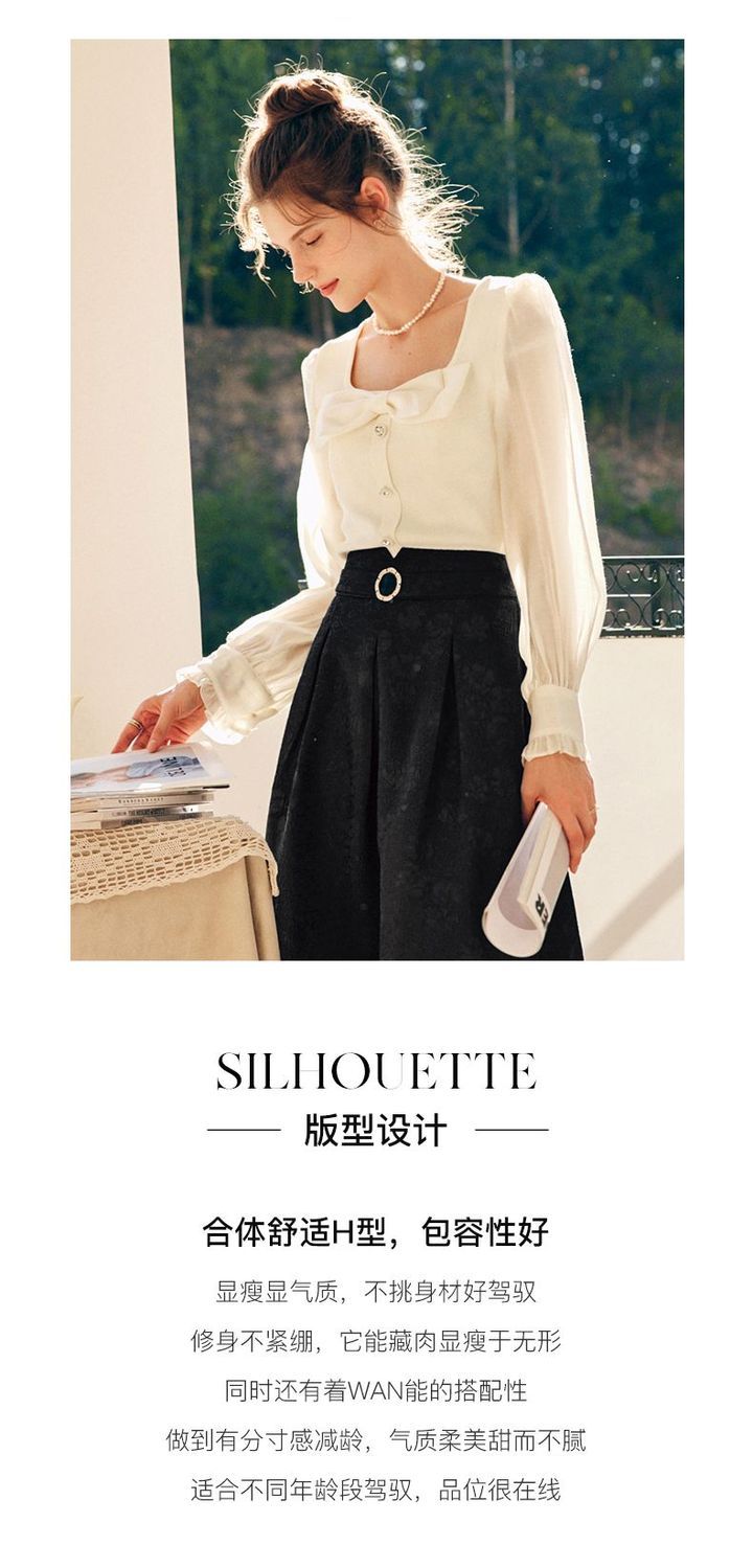 OLrain欧芮儿法式白色方领雪纺蕾丝衫女秋季2022年新款蝴蝶结小衫