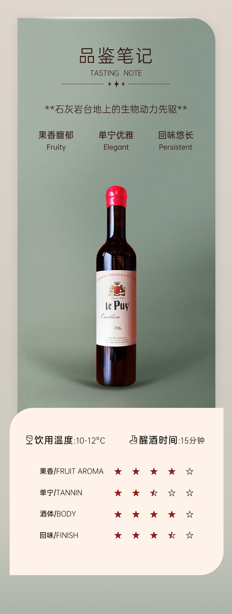 勒庞庄园“传统”红葡萄酒500ml/瓶 2022 Le Puy Emilien 500ml