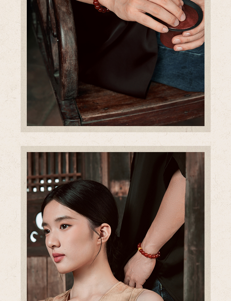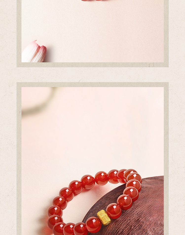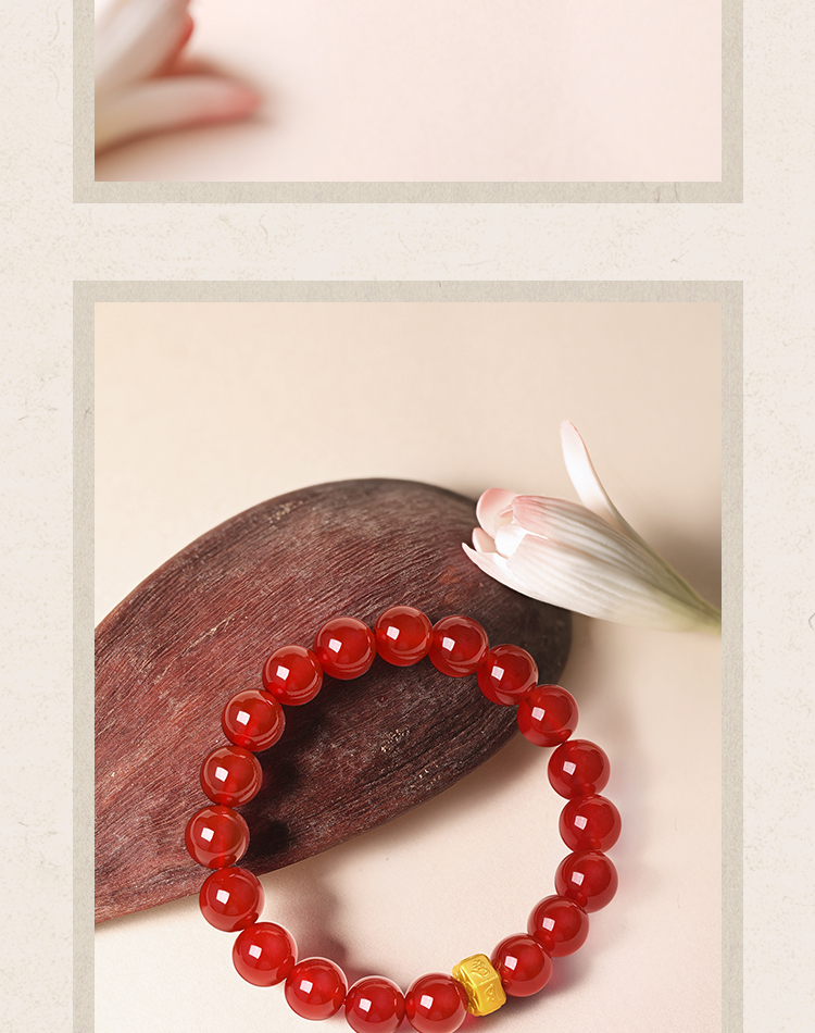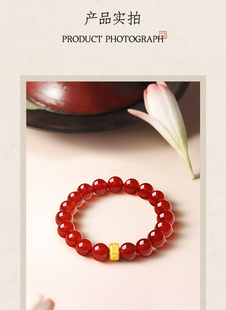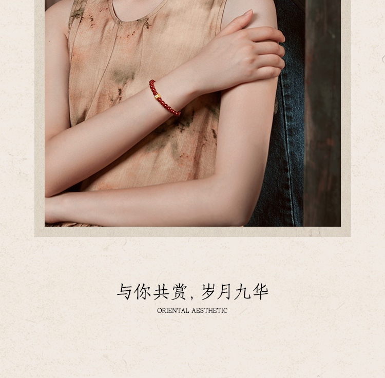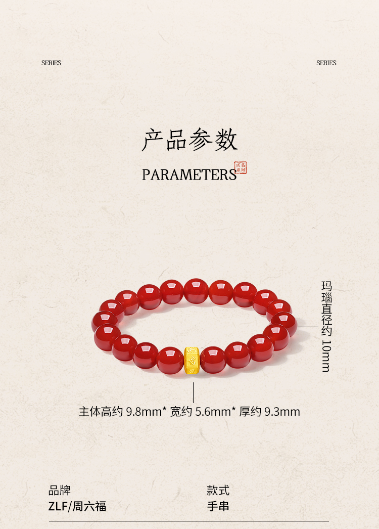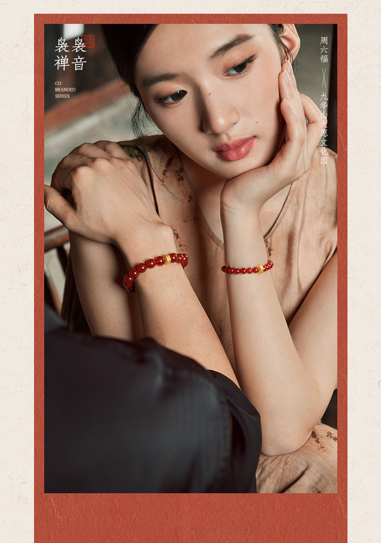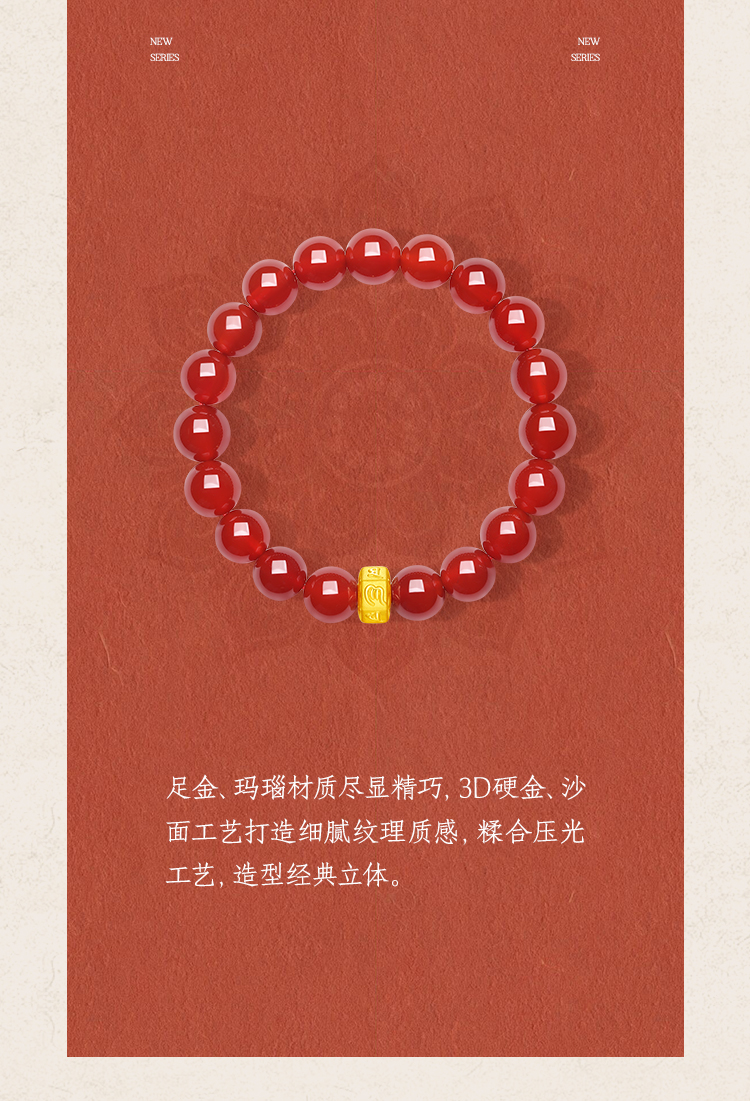 周六福黄金手串情侣款3d硬金定价九华山联名六字真言足金玛瑙手串