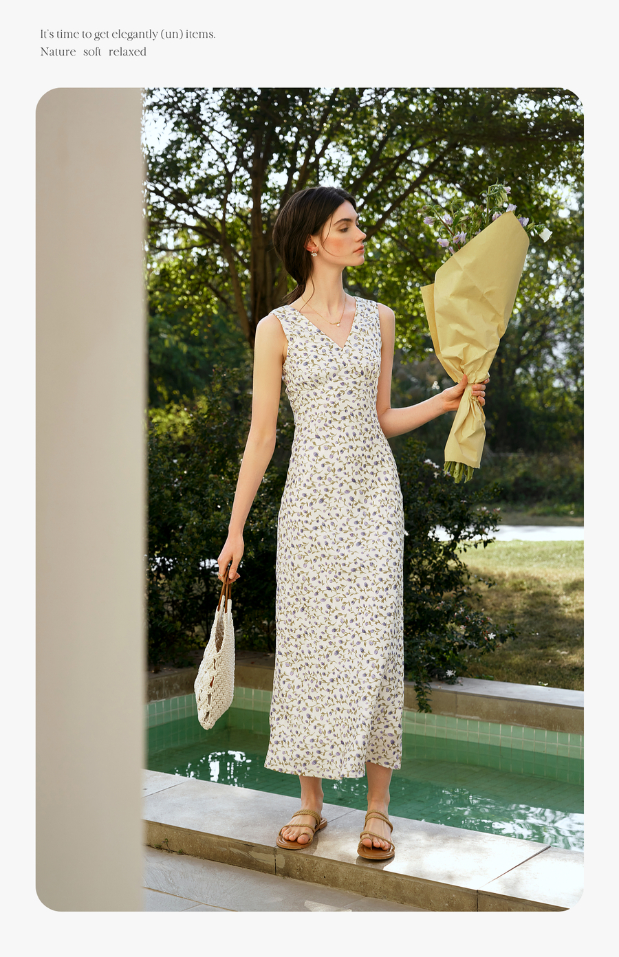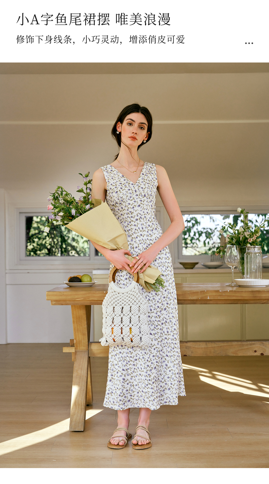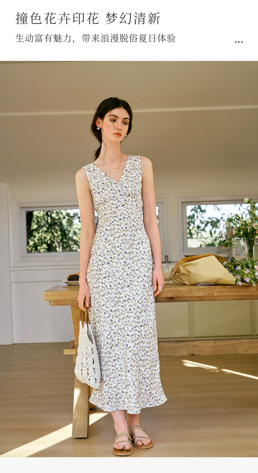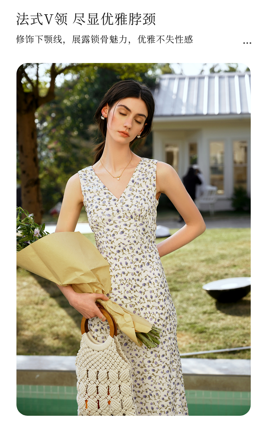 OLrain欧芮儿法式花色连衣裙女夏季2025新款时尚碎花V领无袖长裙