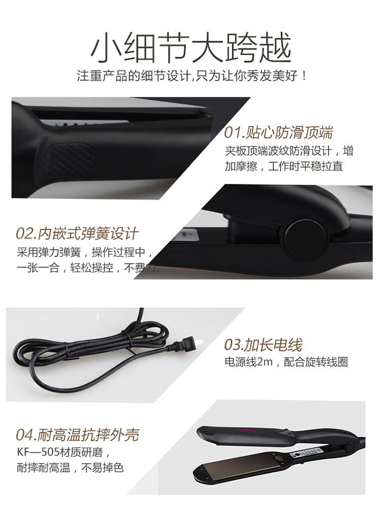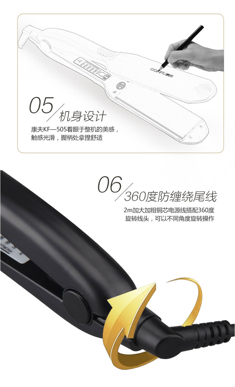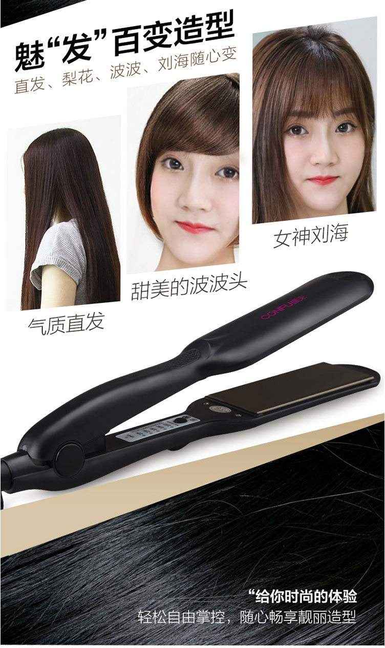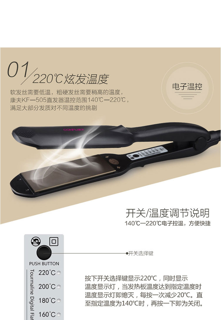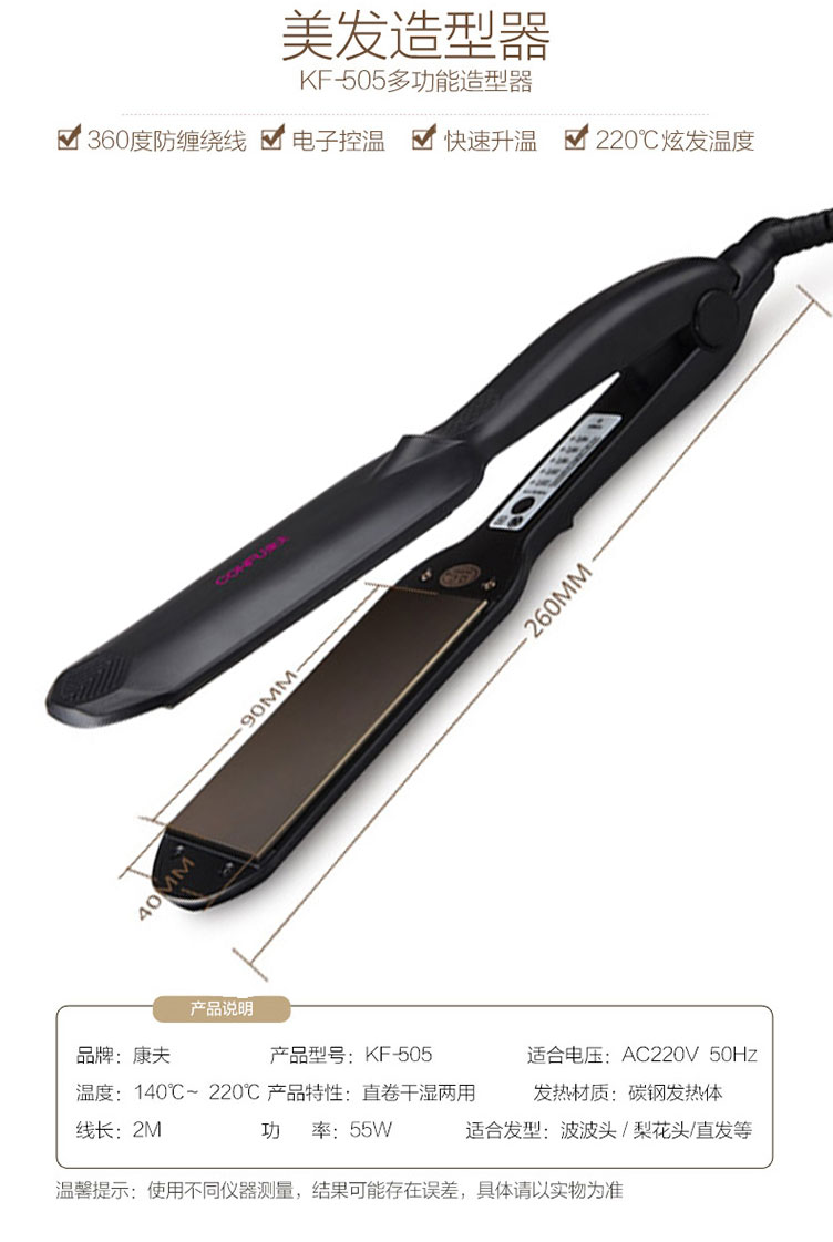 康夫(CONFU)卷发棒 夹板直发器 直发卷发两用专业直发夹 发廊理发店专用五档控温直板夹 时尚黑KF-505