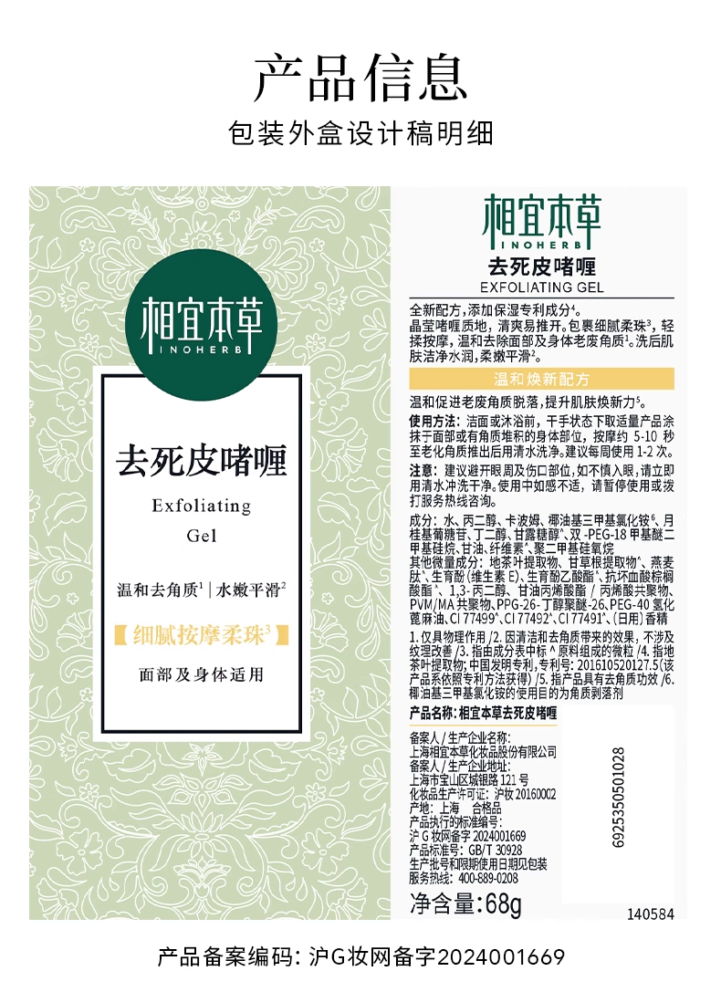 相宜本草去死皮啫喱68g/支*3